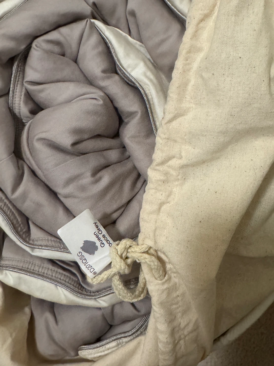 Vesta silk-filled duvet in Queen size, Space Grey colour. It's a heavyweight option, suitable for cold sleepers. Comes with a storage bag.