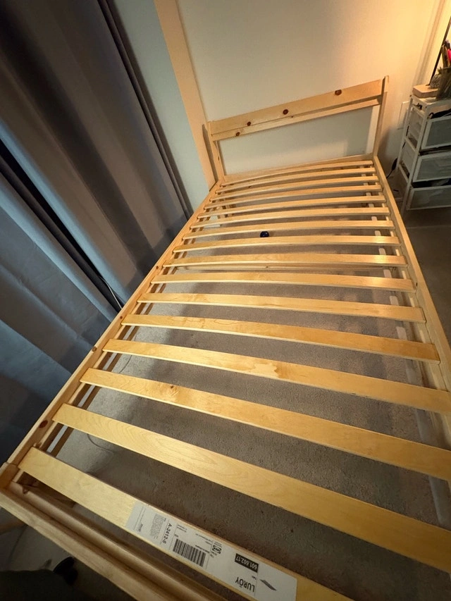 Buy & SellTwin Bedframe - IKEA (Moving Sale)Twin Bedframe - IKEA (Moving Sale)$60Selling a twin bedframe from IKEA. Pickup only.WHERE TO MEETThule StView MapSELLERFuadWoodbridge100 reviews0 chats·0 favorites·9 viewsSEND CHAT TO SELLERHi Fuad! I’m interested in your listing.Hi Fuad! I’m interested in your listing.Get the Karrot app to chatSign In to chat
