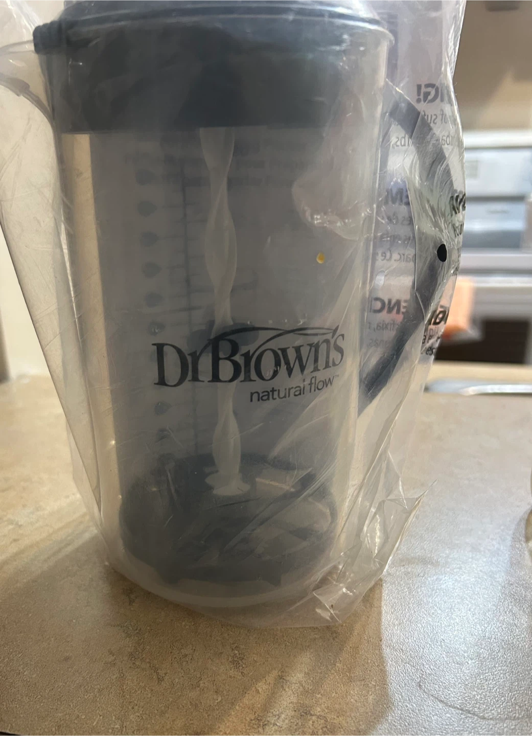 This is a Dr. Brown's Natural Flow bottle. It's designed for baby feeding. Includes internal vent system.