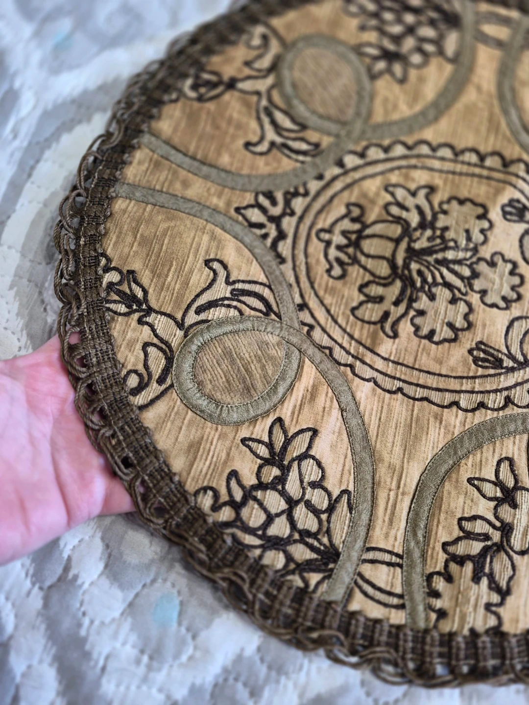 Beautiful Vintage 15" Round Tapestry Doilie Placemat Table Decor