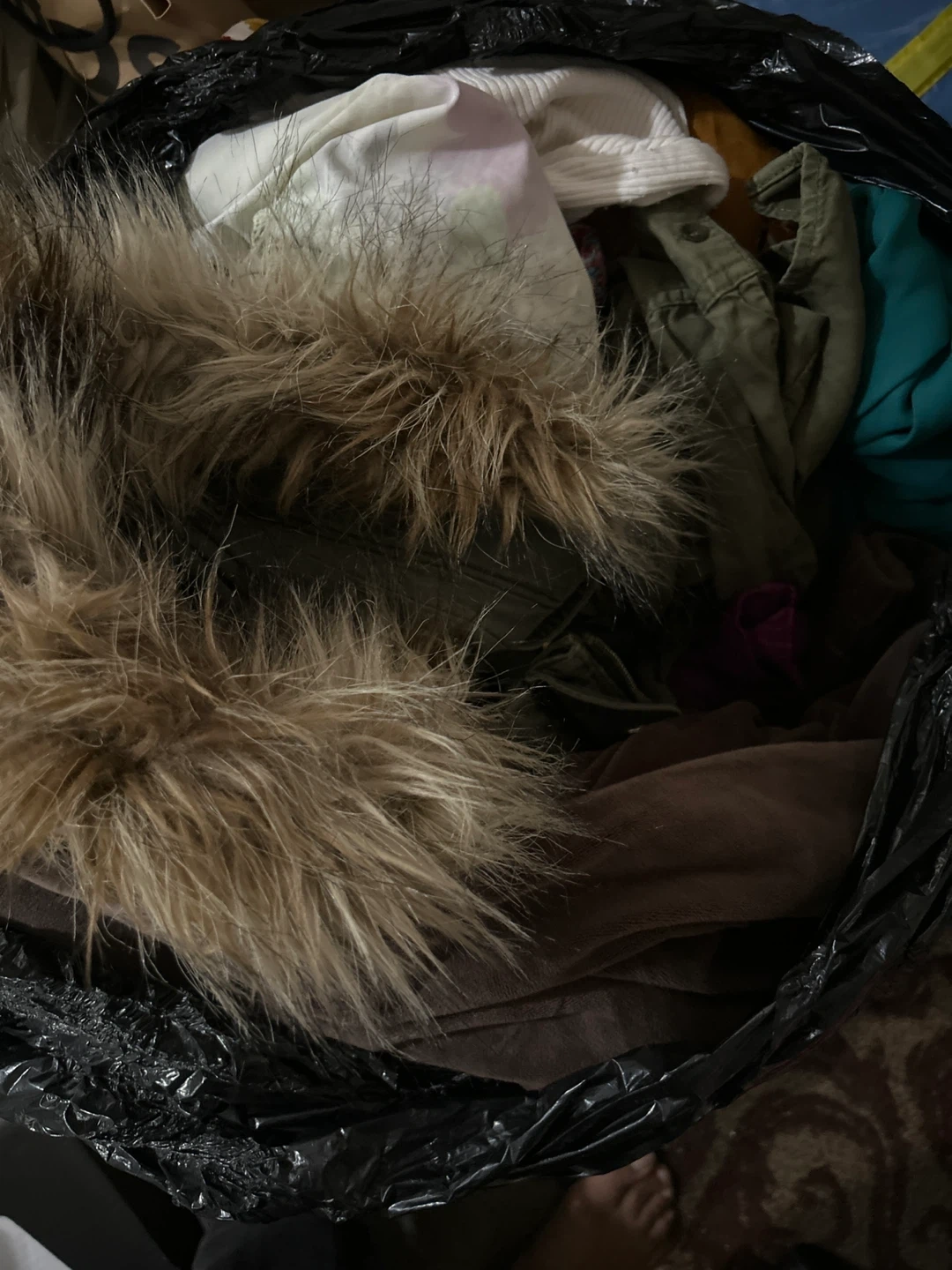 A bag filled with jackets, blazers, pants , sweaters , and dresses. All different sizes and brands. Doing a closet clear out. Please take. Some stuff is also never worn