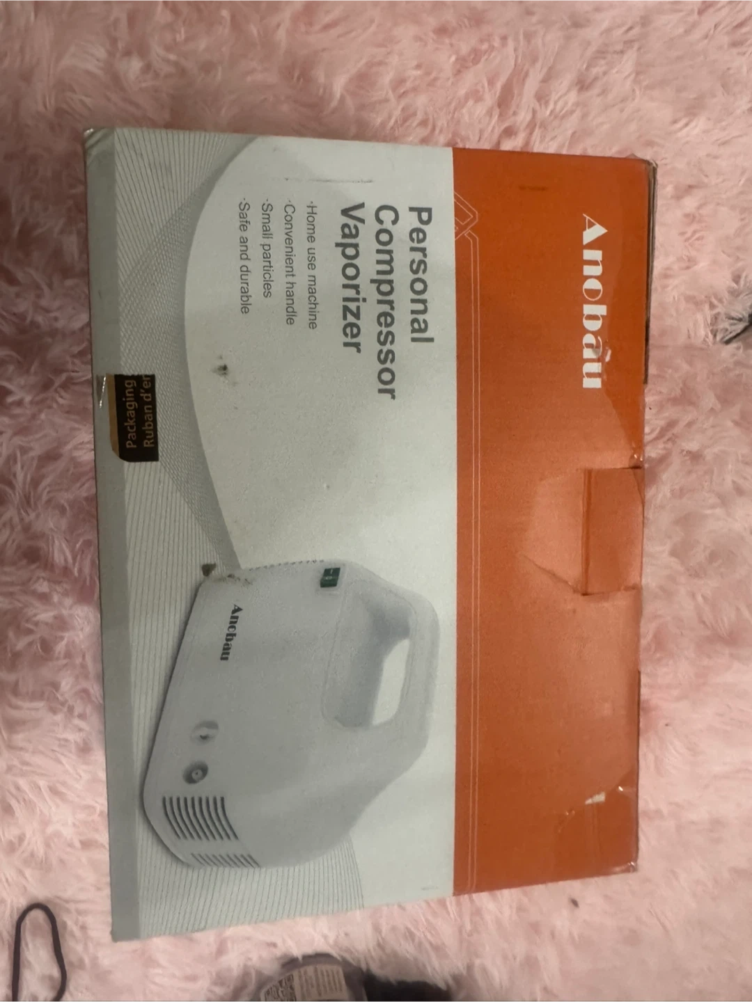 This Anobau personal compressor vaporizer is a home use machine. It's designed with a convenient handle and produces small particles. Includes essential accessories for operation.