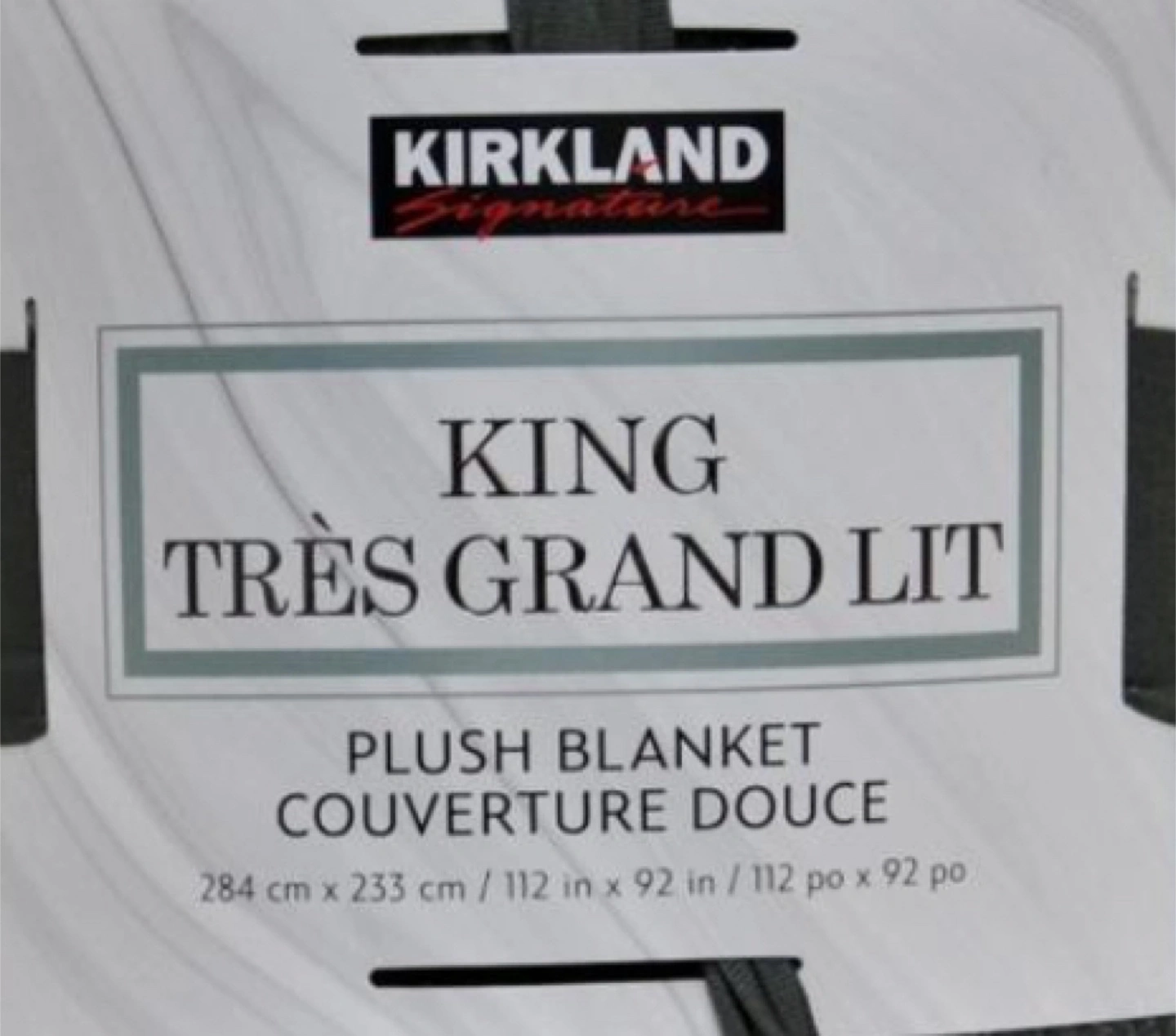 Snuggle up with this super soft Kirkland Signature plush blanket! It's a king size, perfect for adding an extra layer of warmth to your bed or for cozying up on the couch. The dimensions are 284 cm x 233 cm (112 in x 92 in). Originally bought for $49.99.