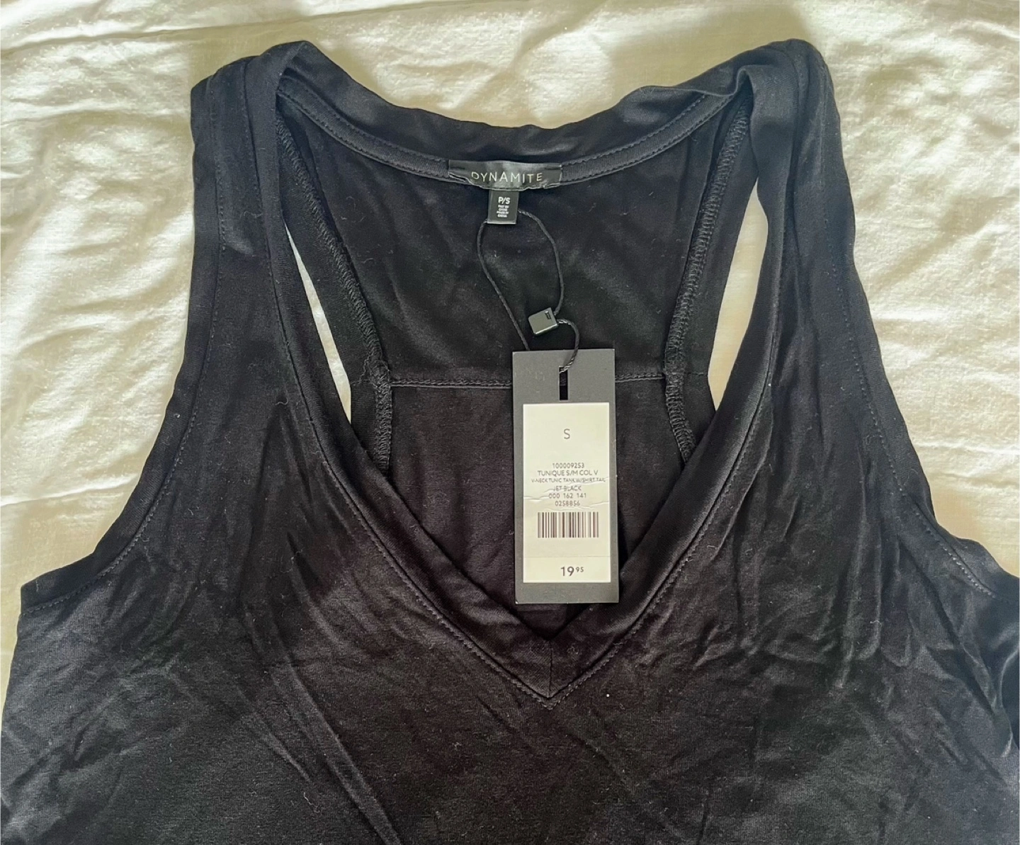I'm selling a brand new Dynamite black tank top in size small! It still has the original tag attached. A great basic to add to your wardrobe