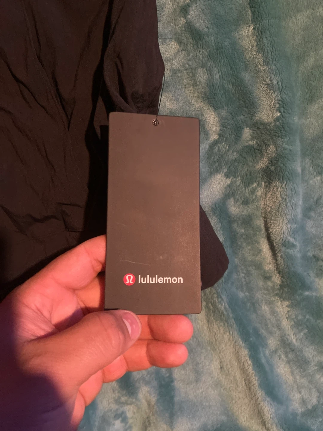 This Lululemon anorak is made from two-way stretch ripstop fabric that repels light rain. It features a snap-button collar, drop-in front pocket with hidden snap closure, and a zippered kangaroo pocket with hidden phone and coin sleeve. It's designed for relaxed fit and hip length.