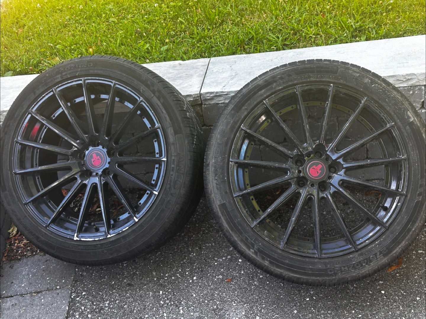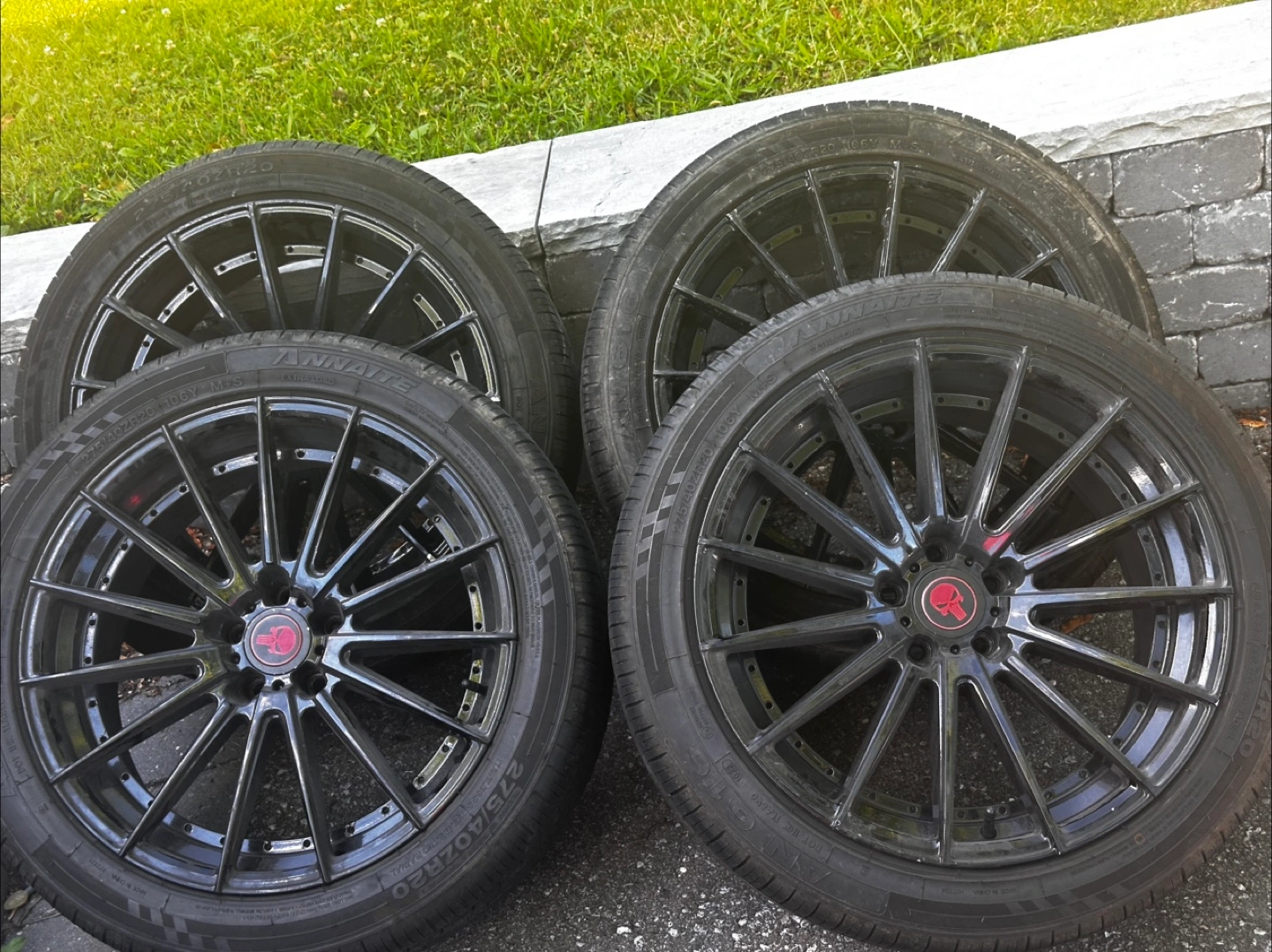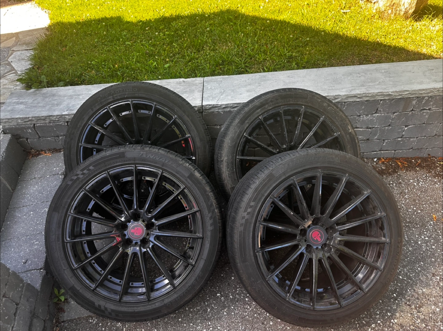 Selling a set of four Ananke wheels, each fitted with tires sized 275/40R20. It was on 2018 dodge charger . They are in used condition, ready for a new vehicle! Send me your best price