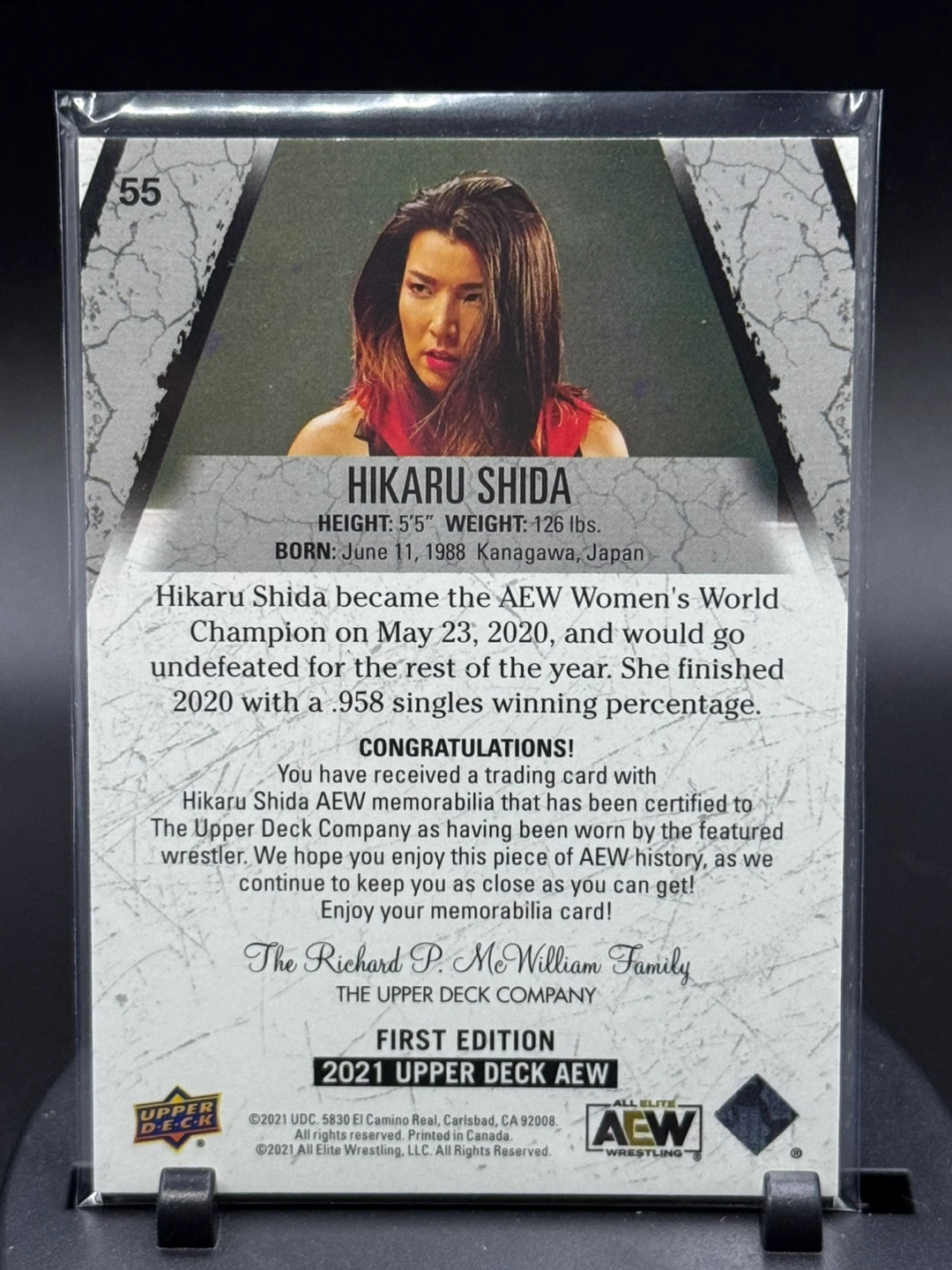 You've got a trading card lot featuring AEW wrestlers The Butcher and Rey Fenix. Both are 2021 Upper Deck First Edition cards. Each includes a piece of memorabilia from the featured wrestler. These cards are certified by The Upper Deck Company.
