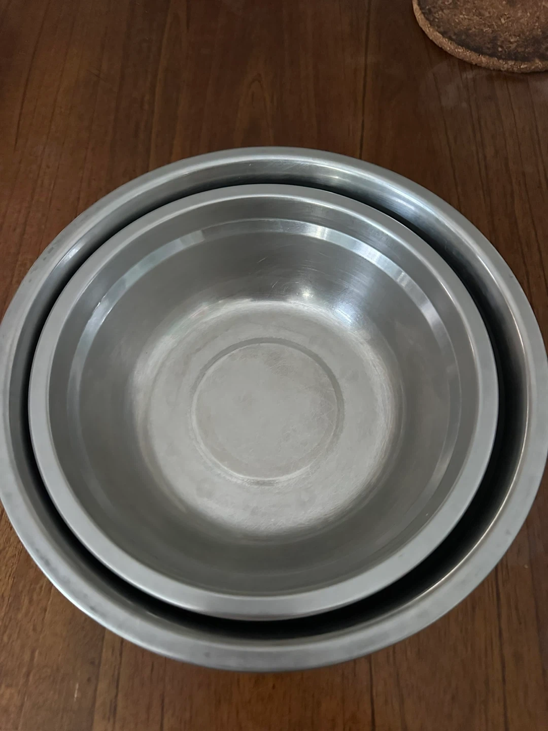 Selling a set of two stainless steel mixing bowls. They're in great shape and perfect for all your baking and cooking needs!