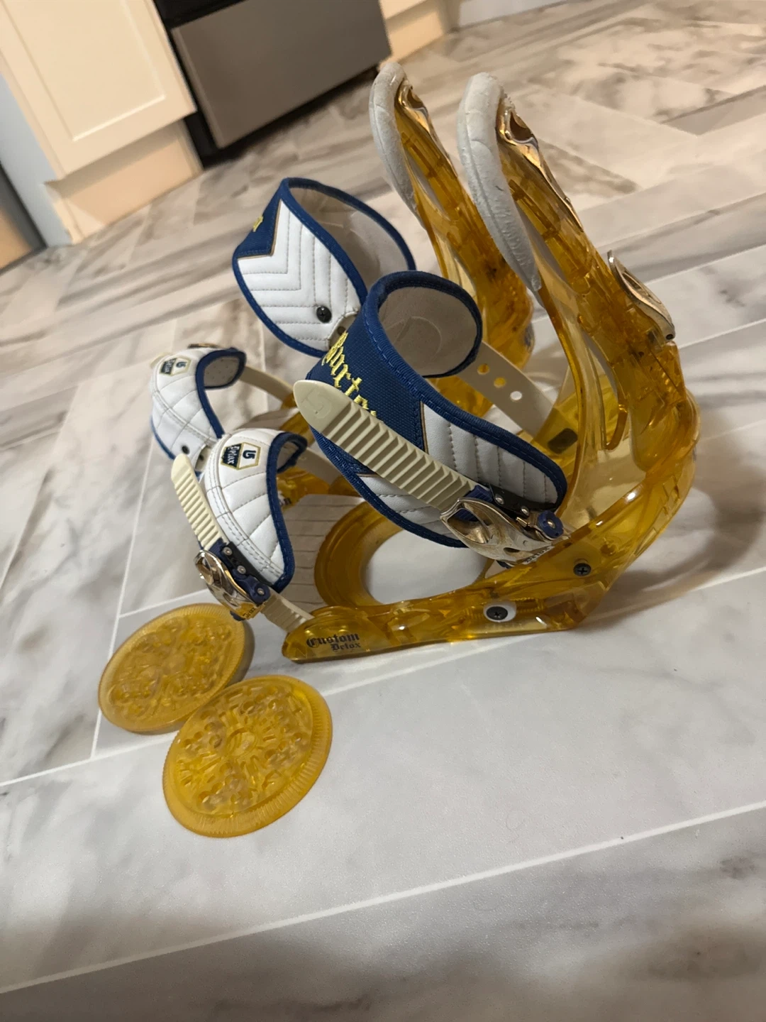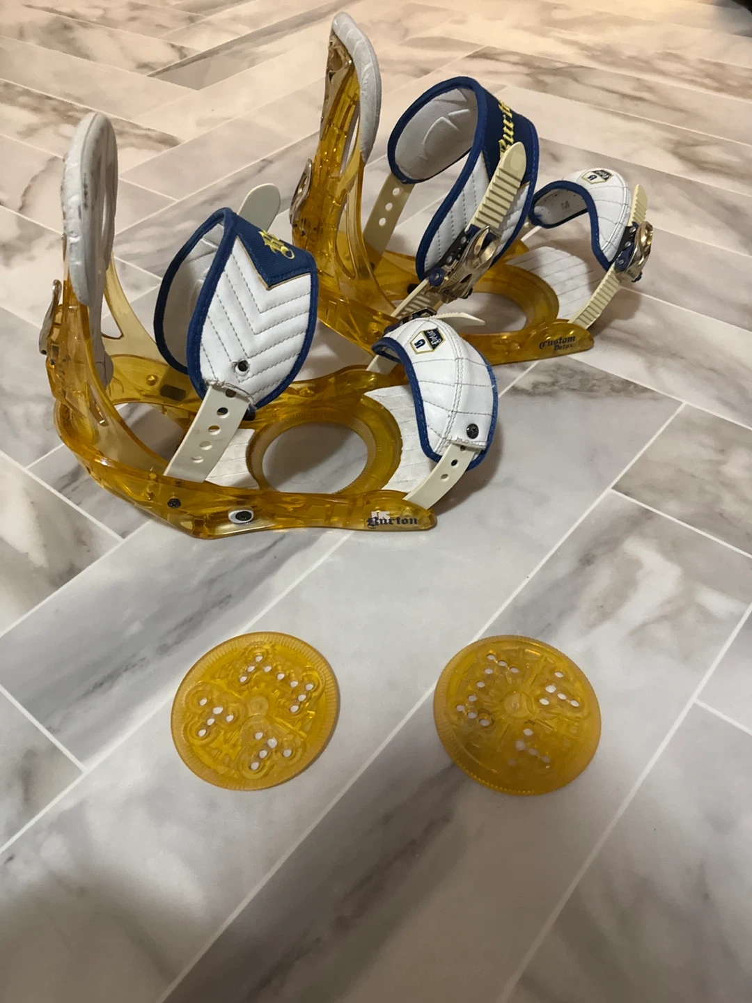 Burton Detonator snowboard bindings in a cool translucent yellow colour. These bindings feature comfortable straps and are designed for performance. Includes two yellow disc covers.