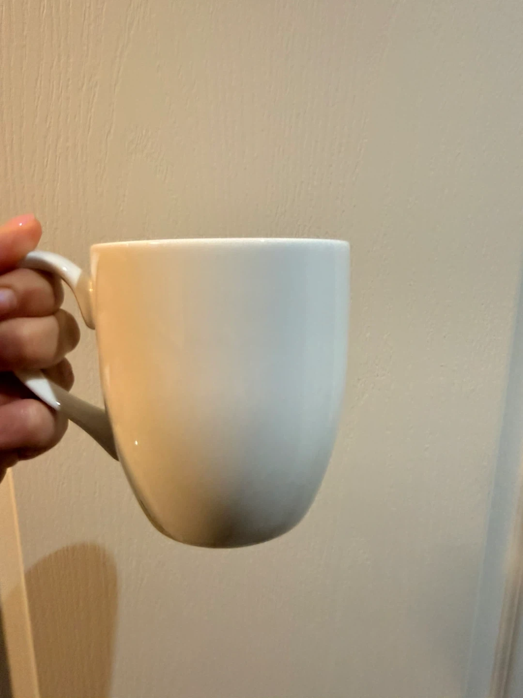 This is a simple white coffee mug. It's made of ceramic and holds a good amount of your favourite hot beverage.