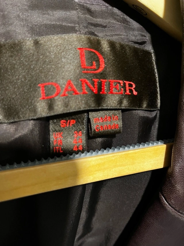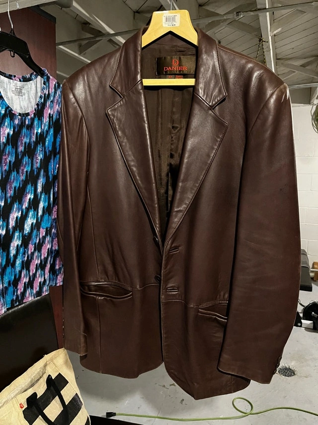 Elevate your style with this Danier brown leather blazer, crafted in Canada and sized as a men's small. This blazer, while in good condition, has a slight imperfection on the right arm, adding a touch of character. Specifications: * Brand: Danier * Size: Small (S) * Colour: Brown * Made in Canada This is priced to sell according to similar blazers on Kijiji! If the ad is still up, the item is still available! Open to offers