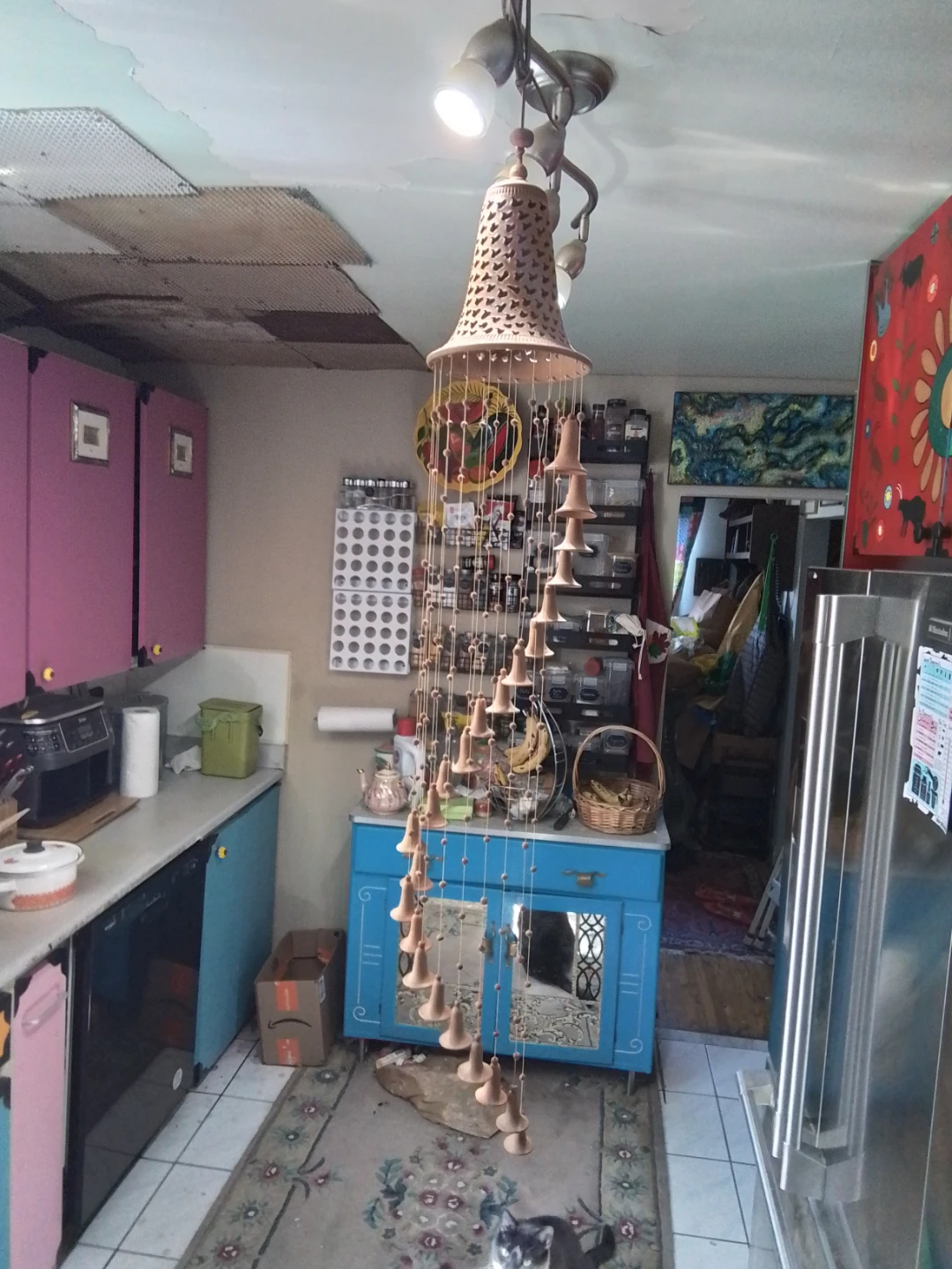 Cuban Handcrafted Terracotta Bell Wind Chime New 45" Long