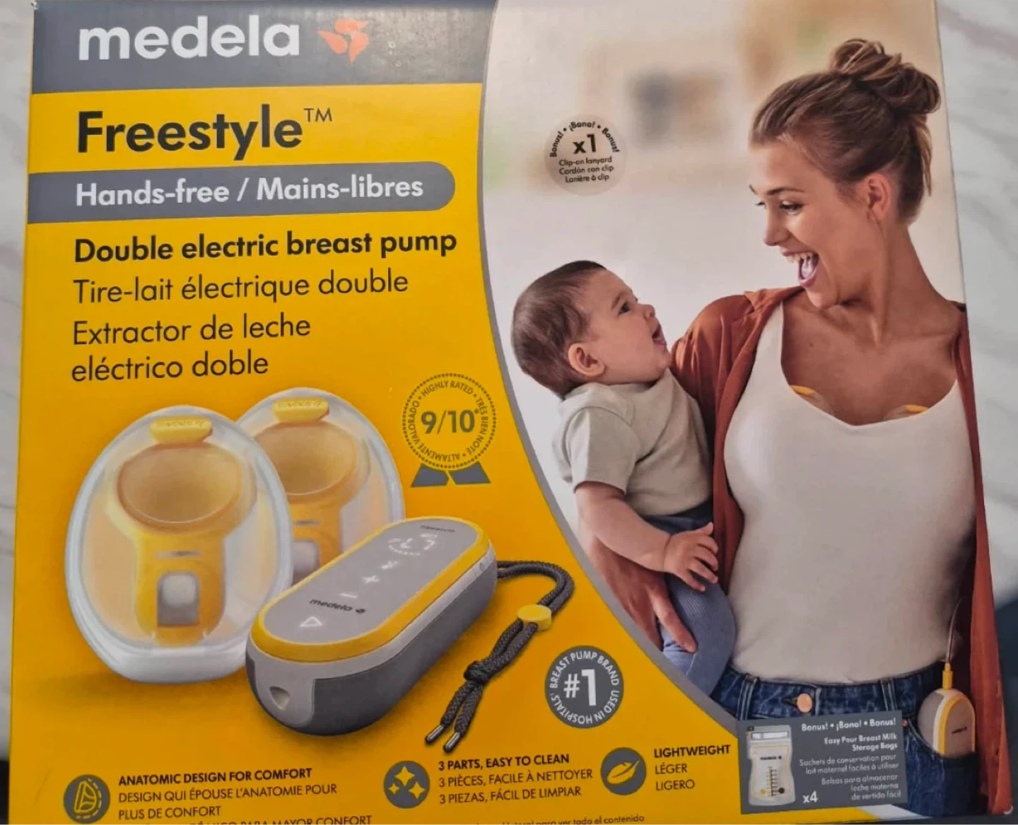 This Medela Freestyle is a double electric breast pump. It features wearable, ultra-lightweight collection cups and 2-Phase Expression Technology. It's USB rechargeable and compatible with the Medela Family App.