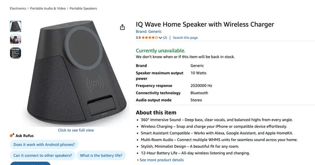 The iQ Wave is a 360-degree Bluetooth speaker with a built-in wireless charging stand for your smartphone. Brand: iQ. Key Features: Delivers 10W premium 360° sound and bass. Features a 15W Qi wireless charger with a flip-out stand, plus a 7.5W MagSafe charger for Apple iPhones. Uses Bluetooth 5.1 for a fast, stable connection with a 10m range. What's in the Box: Bluetooth speaker, USB wall charger, power cable, and instruction manual. Our Price: $29. Condition: Brand New and Factory Sealed. Regular Price: $50.00 + tax. Call or text me at 2264999676 (two-two-six four-nine-nine nine-six-seven-six) if you are interested.