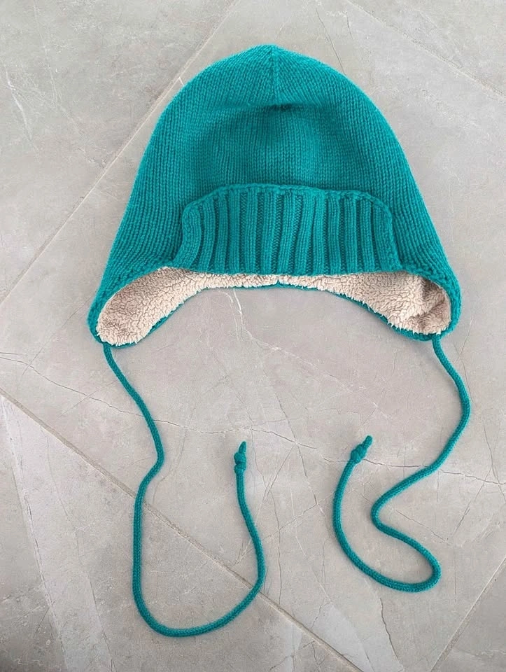 J.Crew Women’s Teal Knit Hat with Ear Flaps – Sherpa Lined