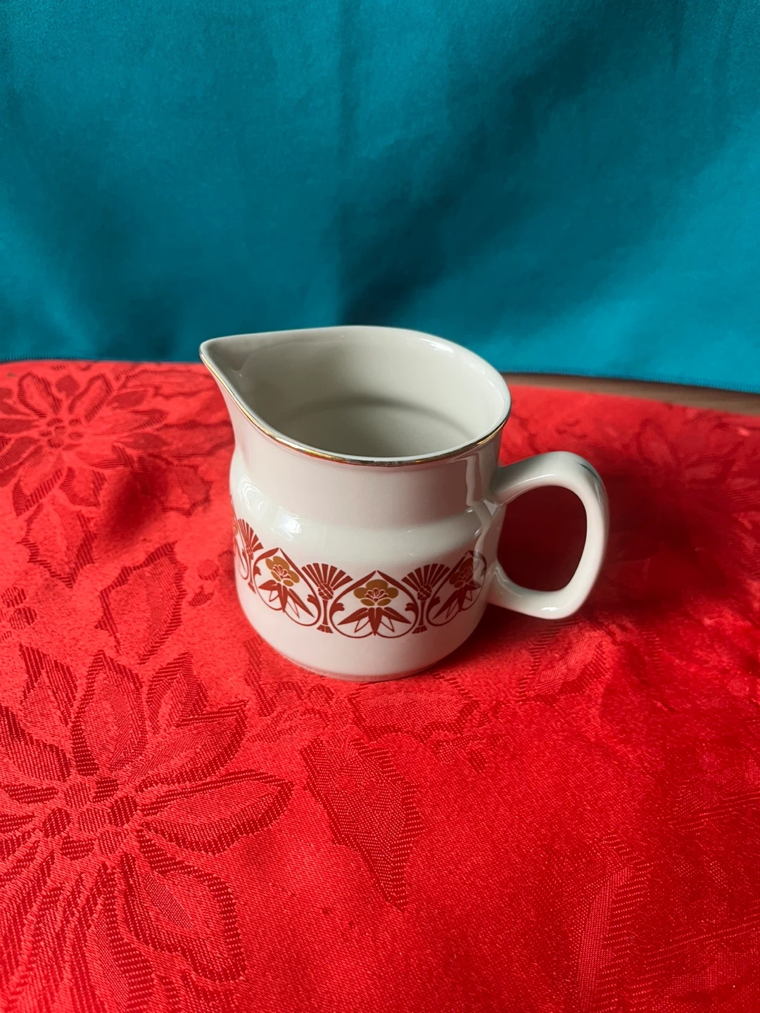 Here's a lovely vintage creamer pitcher! It's in great shape and features a charming design. Perfect for adding a touch of retro flair to your table setting.