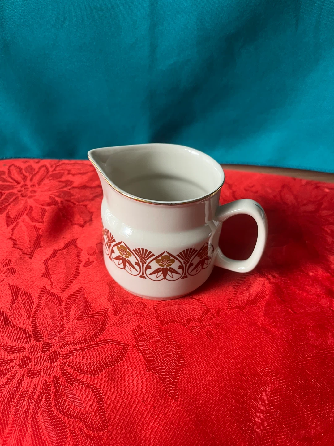 Here's a lovely vintage creamer pitcher! It's in great shape and features a charming design. Perfect for adding a touch of retro flair to your table setting.