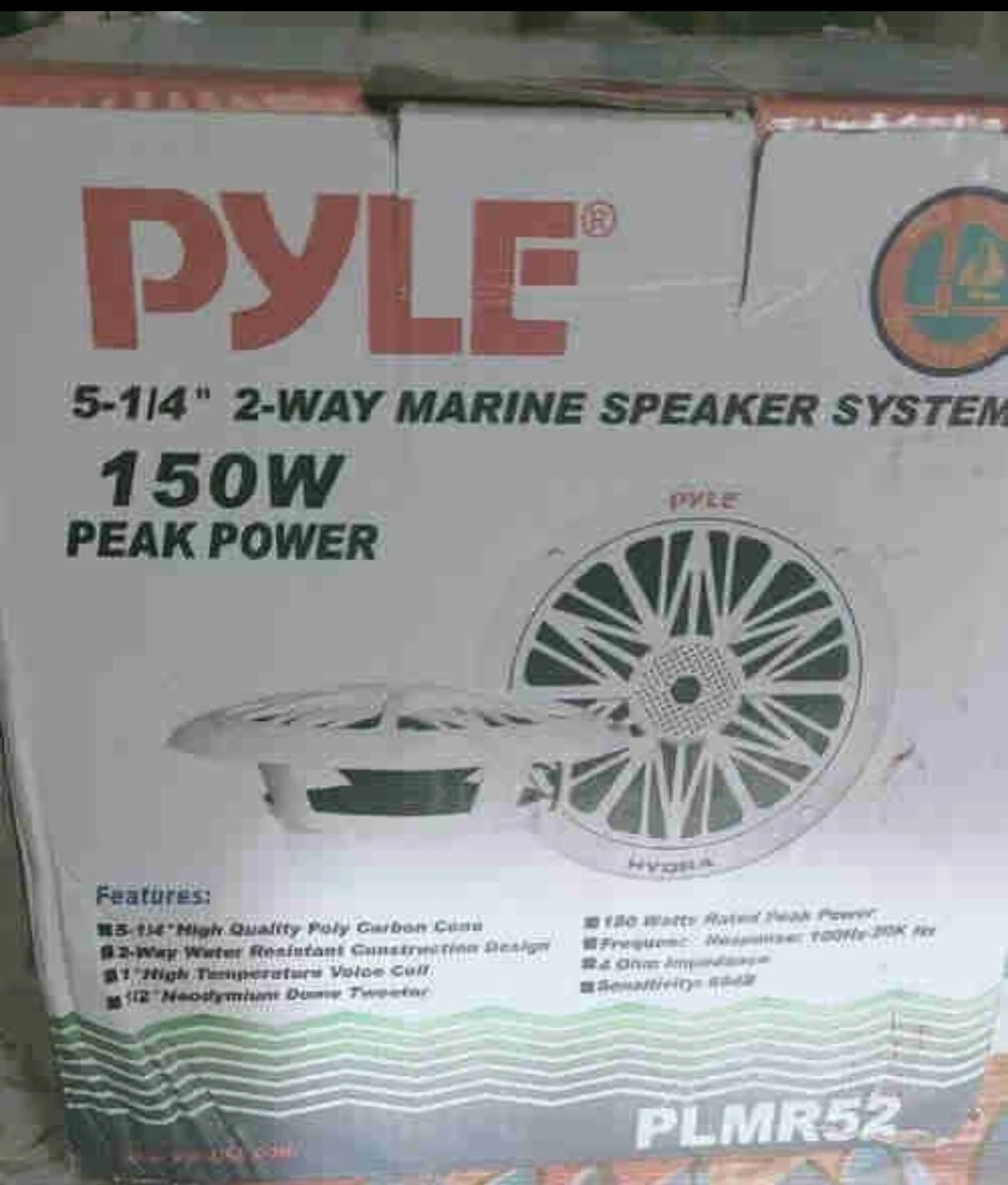 Pyle 5-1/4 inch 2-way marine speaker system. 150W peak power. It's a 2-way water-resistant construction design. Features a 1/2 inch neodymium dome tweeter.