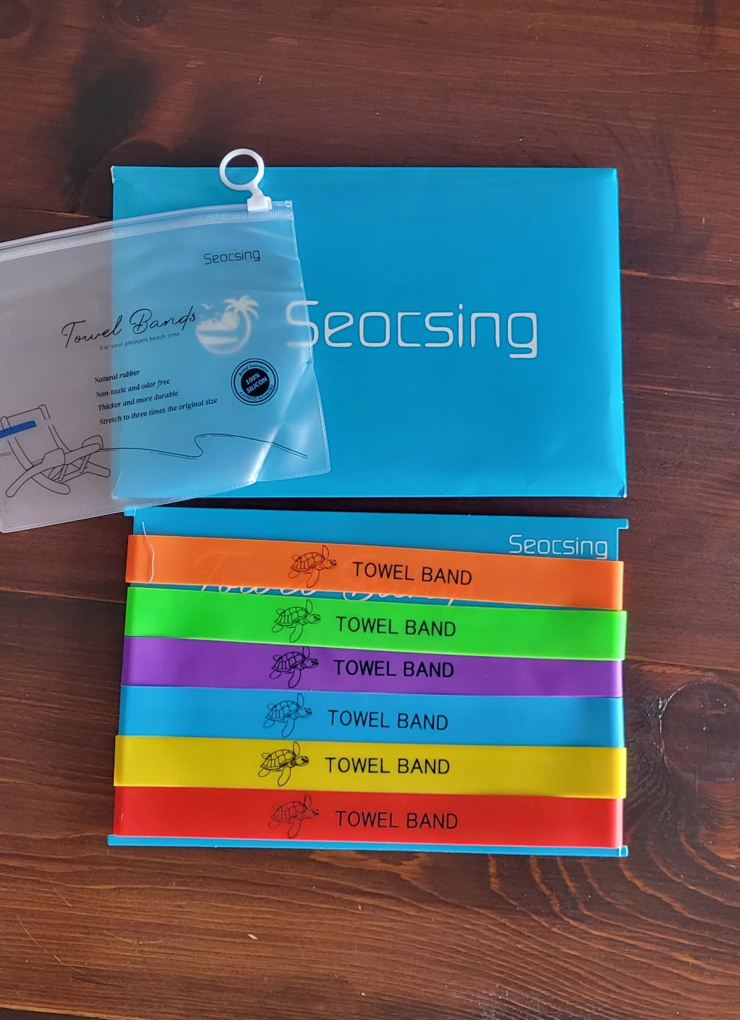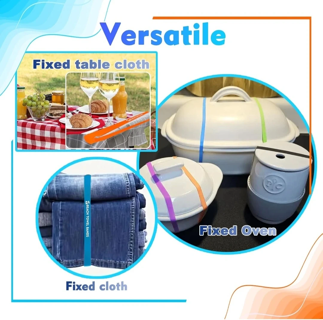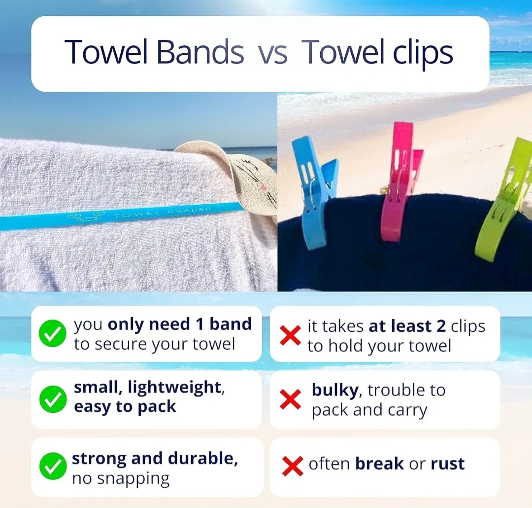 Keep your towels secure with these brand-new Seocsing towel bands. Made from 100% silicone, they're UV-resistant and durable. A storage pouch is included for easy packing. They're great for pools, beaches, spas, cruises, and camping!