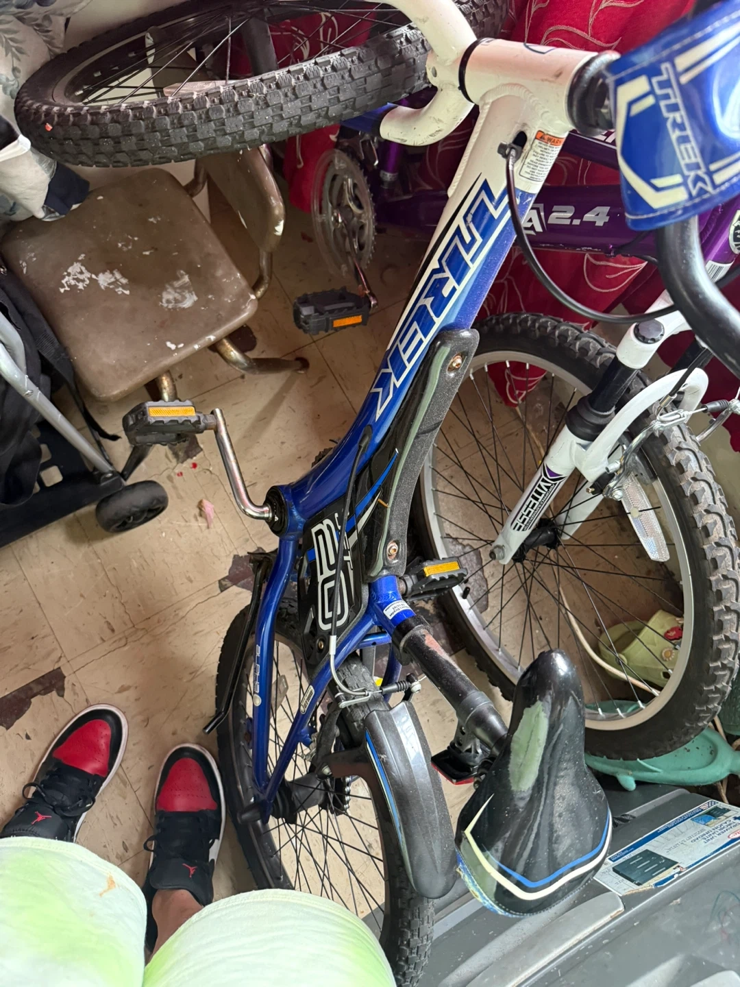 Selling a used Trek kids' bike, perfect for young riders! It's a 20-inch bike with a cool blue and white color scheme. Great for learning to ride or just cruising around the neighborhood