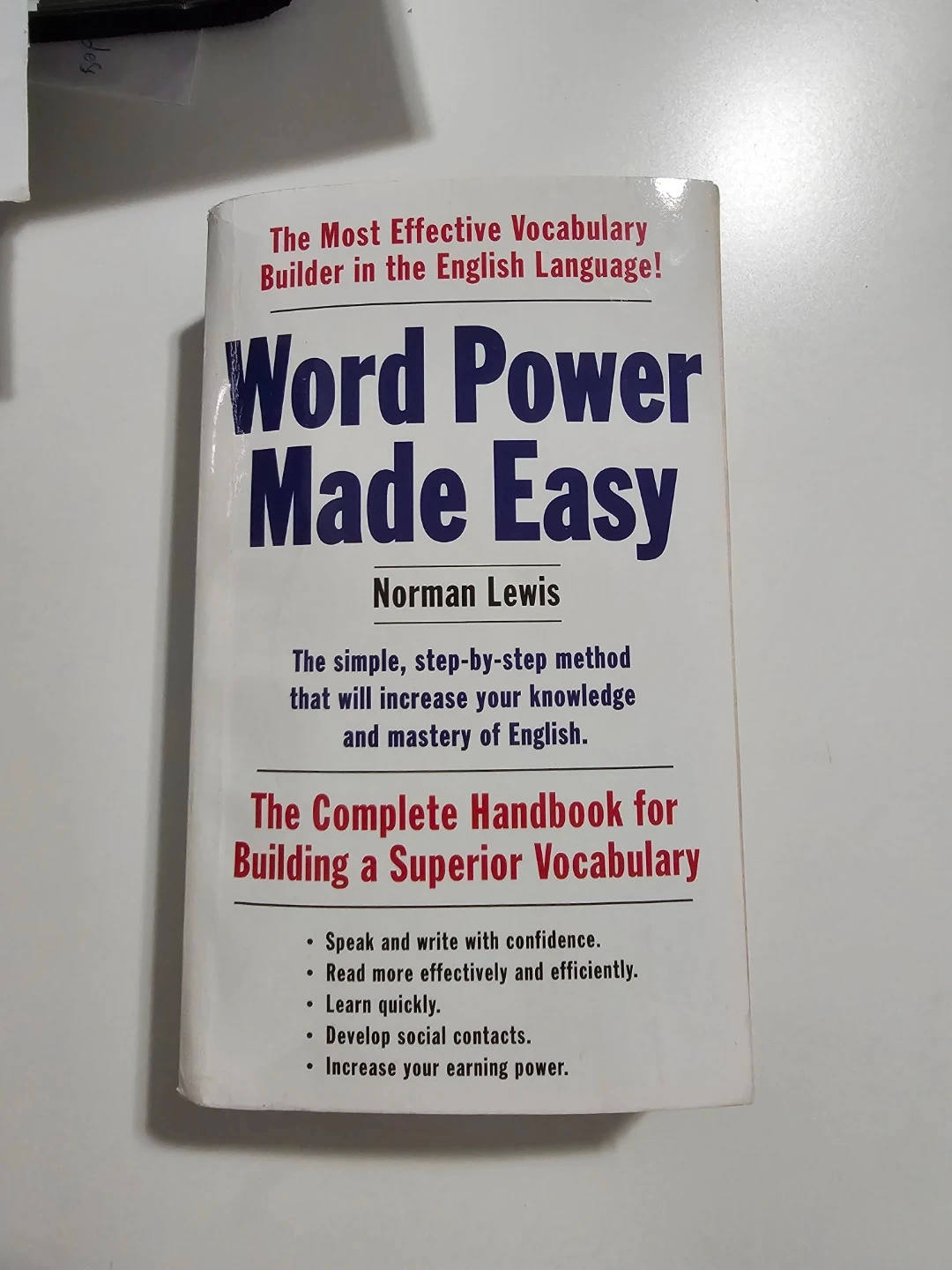 Selling the book 'Word Power Made Easy' by Norman Lewis! It's a complete handbook for building a superior vocabulary and helps you speak and write with confidence. This book teaches ideas and methods of broadening your knowledge as an integral part of the vocabulary building process. Originally, it was priced at $11.99 Canadian.