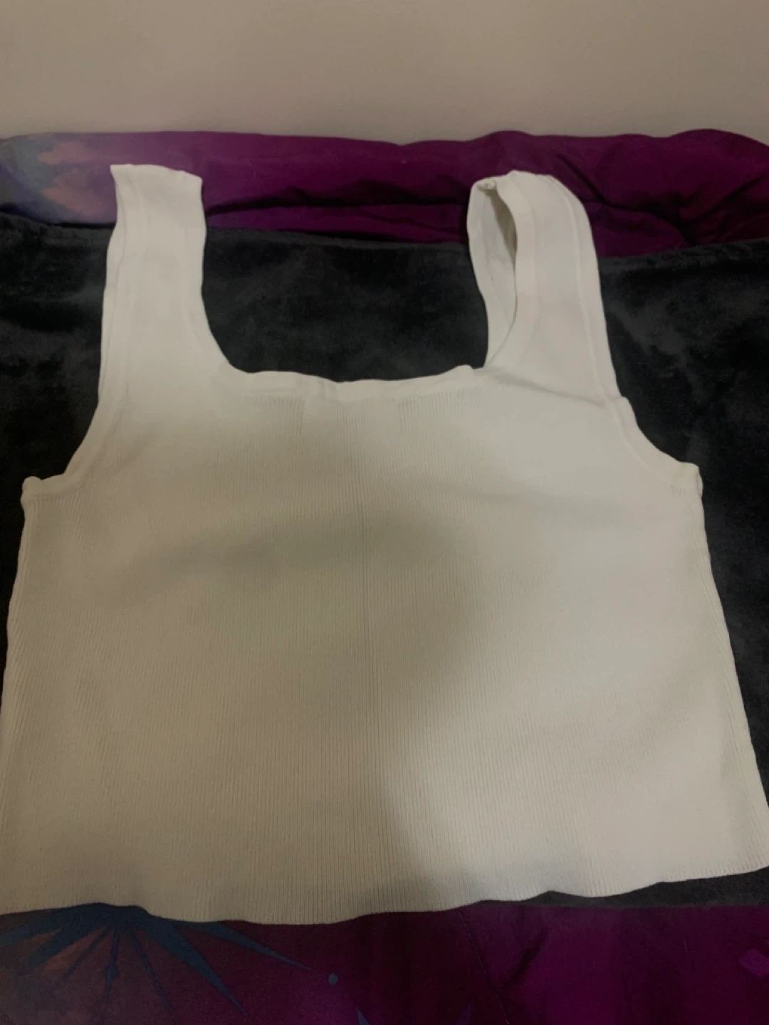 White ribbed tank top from Dissh. Size 8. Made of a stretchy cotton blend.