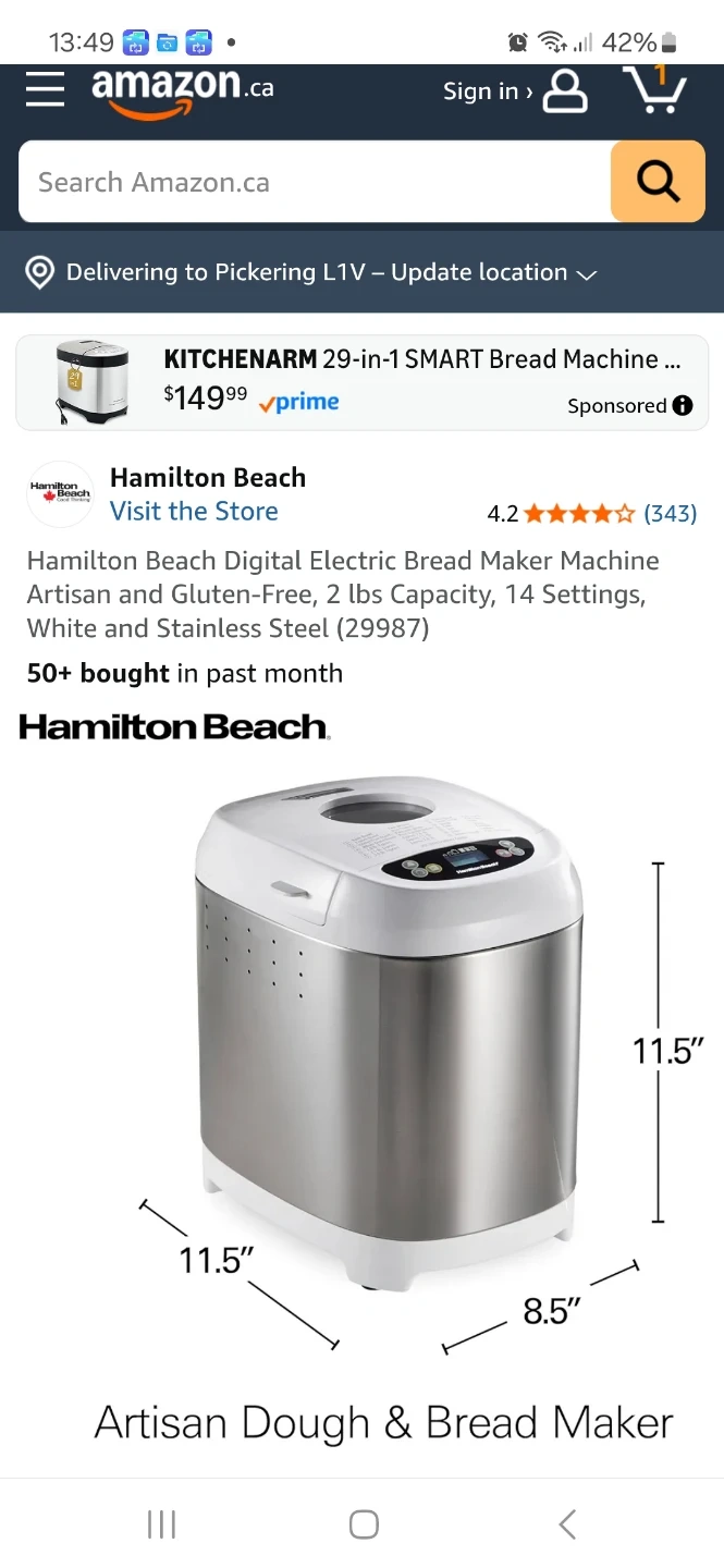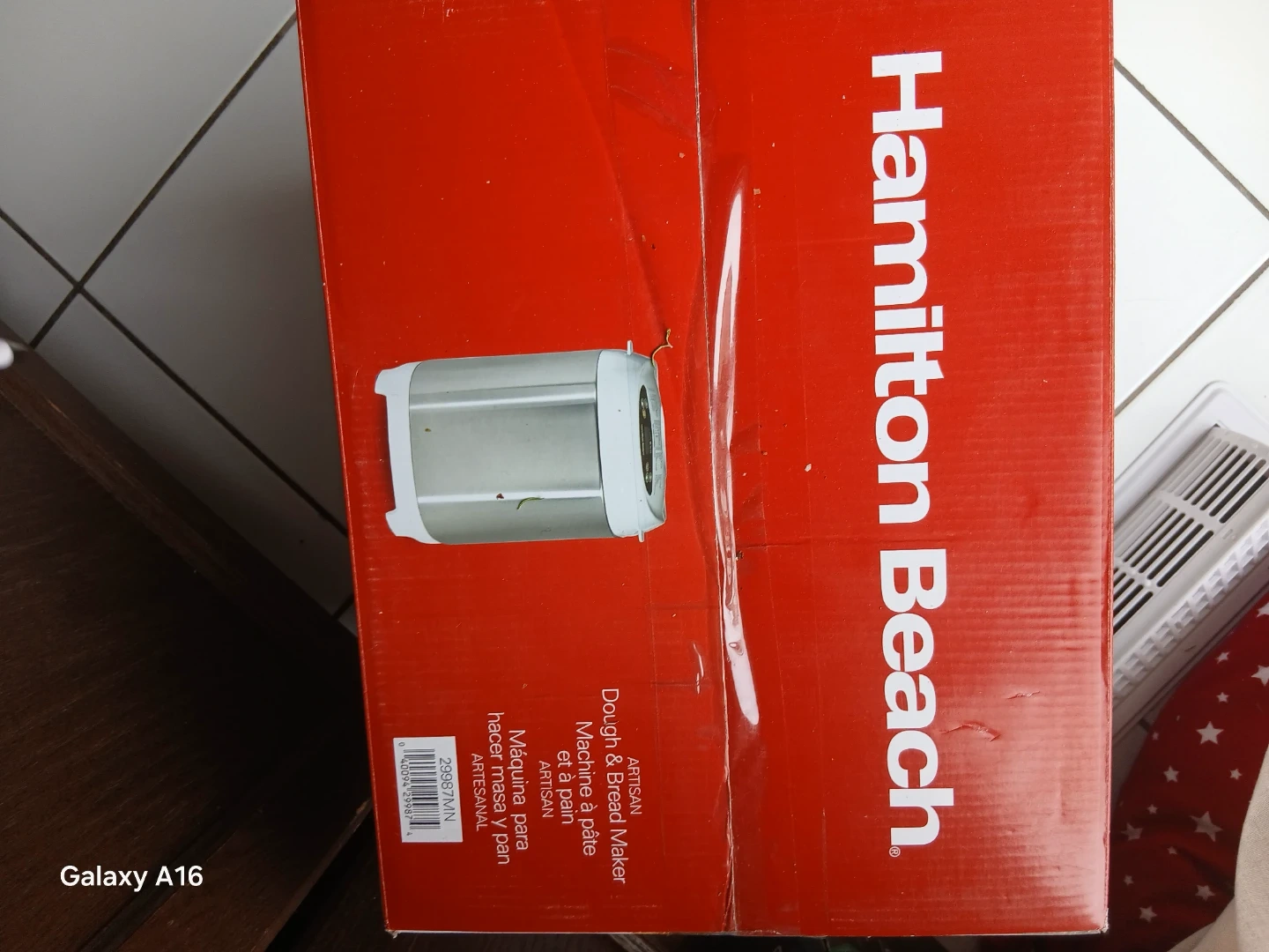 Hamilton Beach Artisan Dough & Bread Maker. It's a digital electric bread machine with 14 settings. It has a 2 lbs capacity and comes in white and stainless steel.