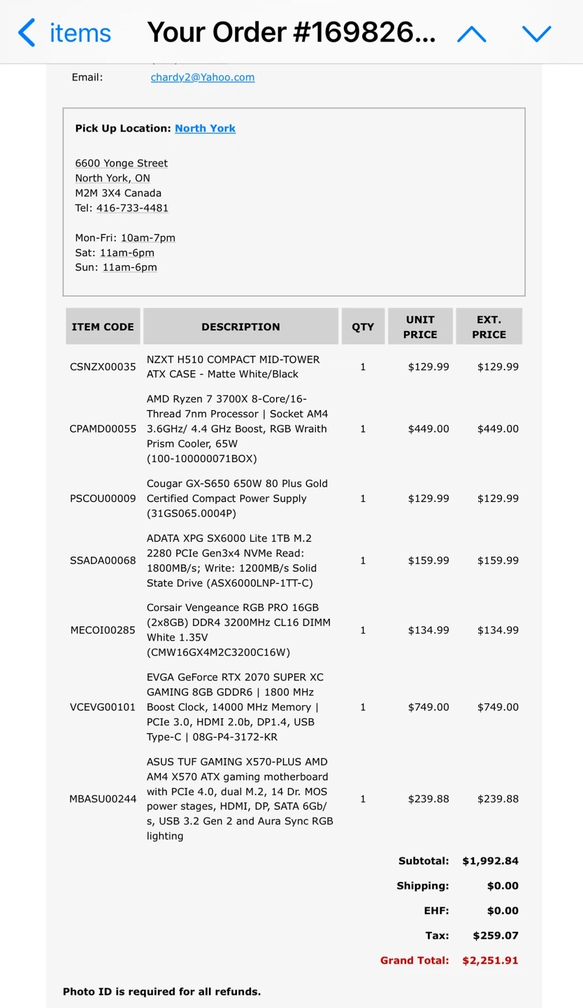 Originally, the total cost for all the components was $2251.91 CAD.
