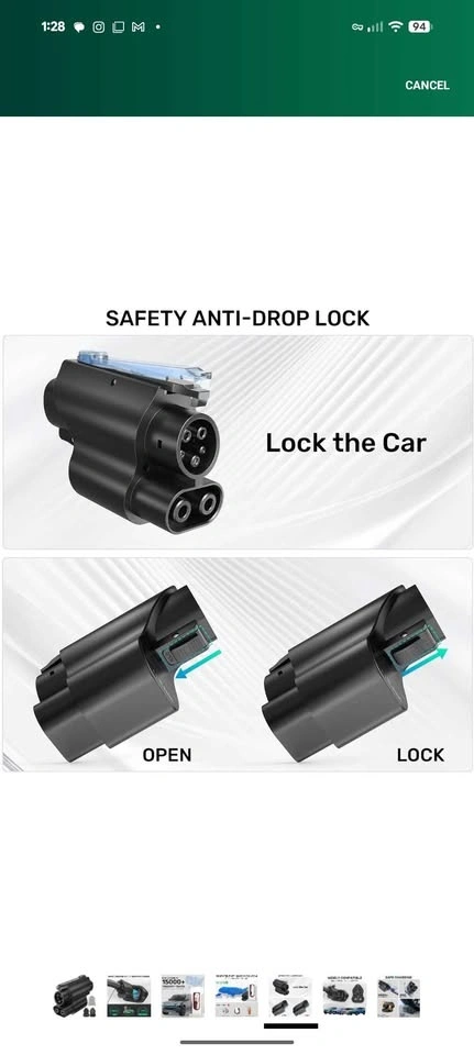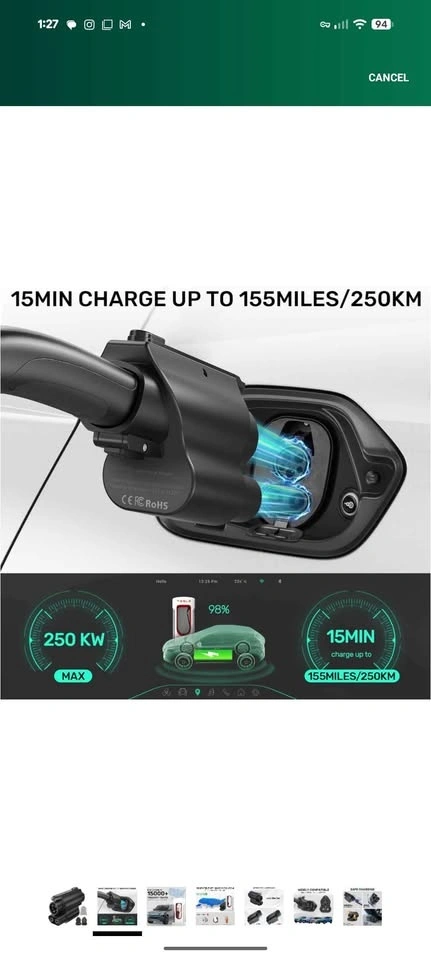 New NACS to CCS1 EV Charging Adapter. This adapter is perfect for charging your CCS1 electric vehicle (Ford, Hyundai, BMW, VW, etc.) using Tesla Superchargers that support the NACS plug. It allows CCS1 EVs to connect to Tesla NACS charging stations and supports fast charging up to 250kW (depending on your vehicle and the charger). It's compact, durable, and easy to use with most EV models (Ford, Hyundai, Kia, VW, Rivian, BMW, etc.). Just plug and play – no setup needed!