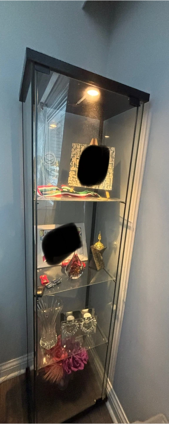Selling an glass display cabinet! It's perfect for displaying collectibles, figures, or anything you'd like to show off. It’s in great shape and ready for a new home