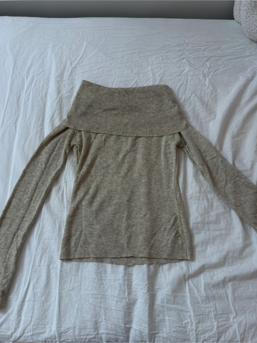 This women's off-the-shoulder sweater is a cozy knit. It features long sleeves and a wide neckline. Great for cooler weather!