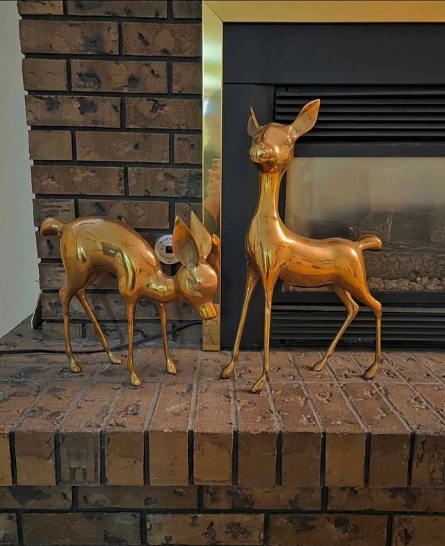 Add a touch of 1960's vintage elegance to your home with this charming collection of used brass decor! This set includes a variety of pieces, perfect for adding character to any room. The items show signs of wear consistent with their age, which only adds to their antique appeal.