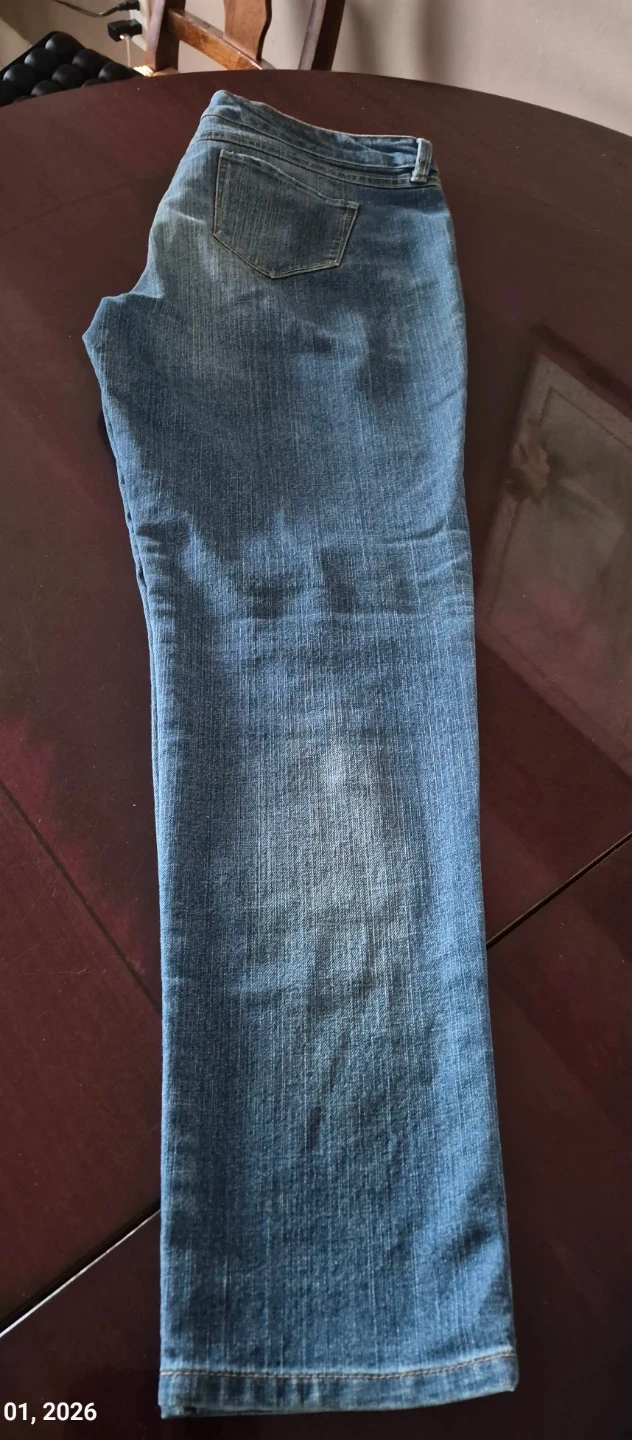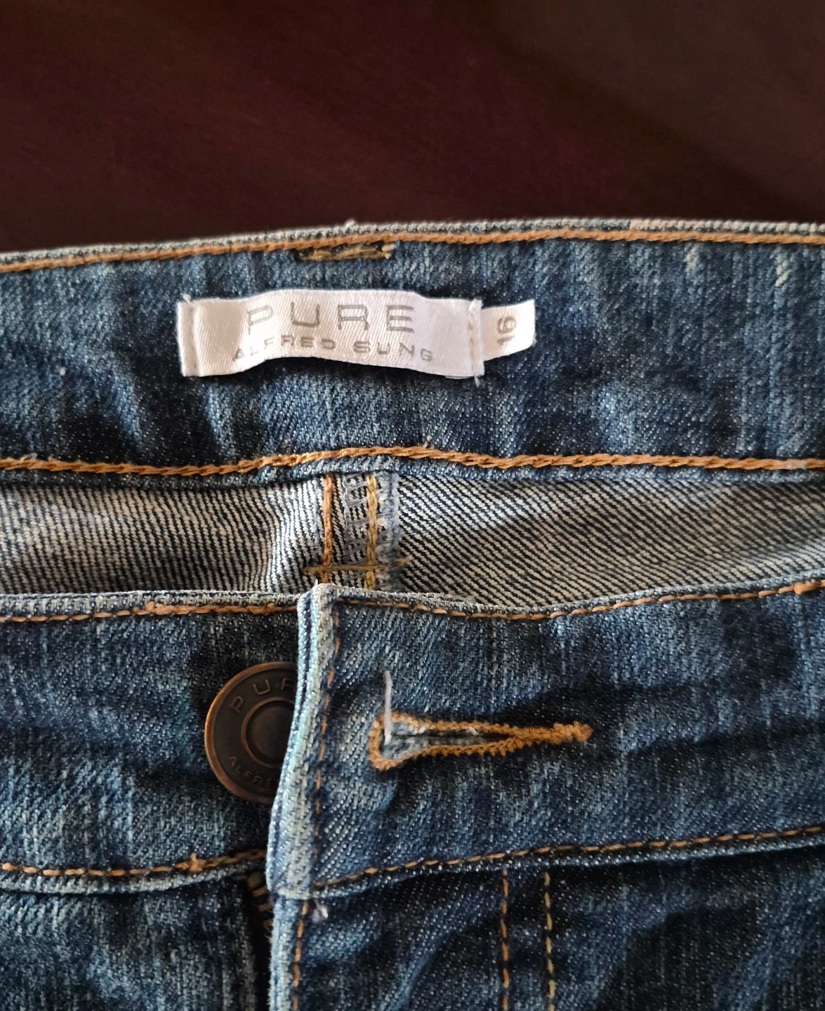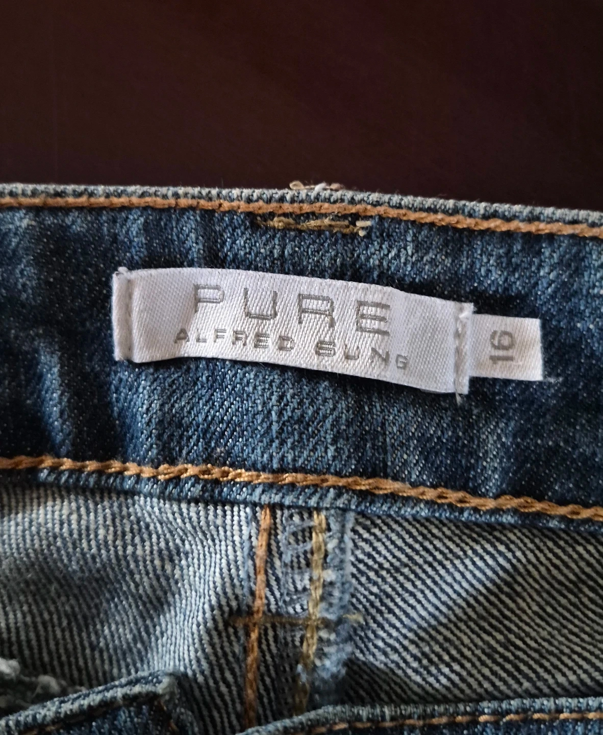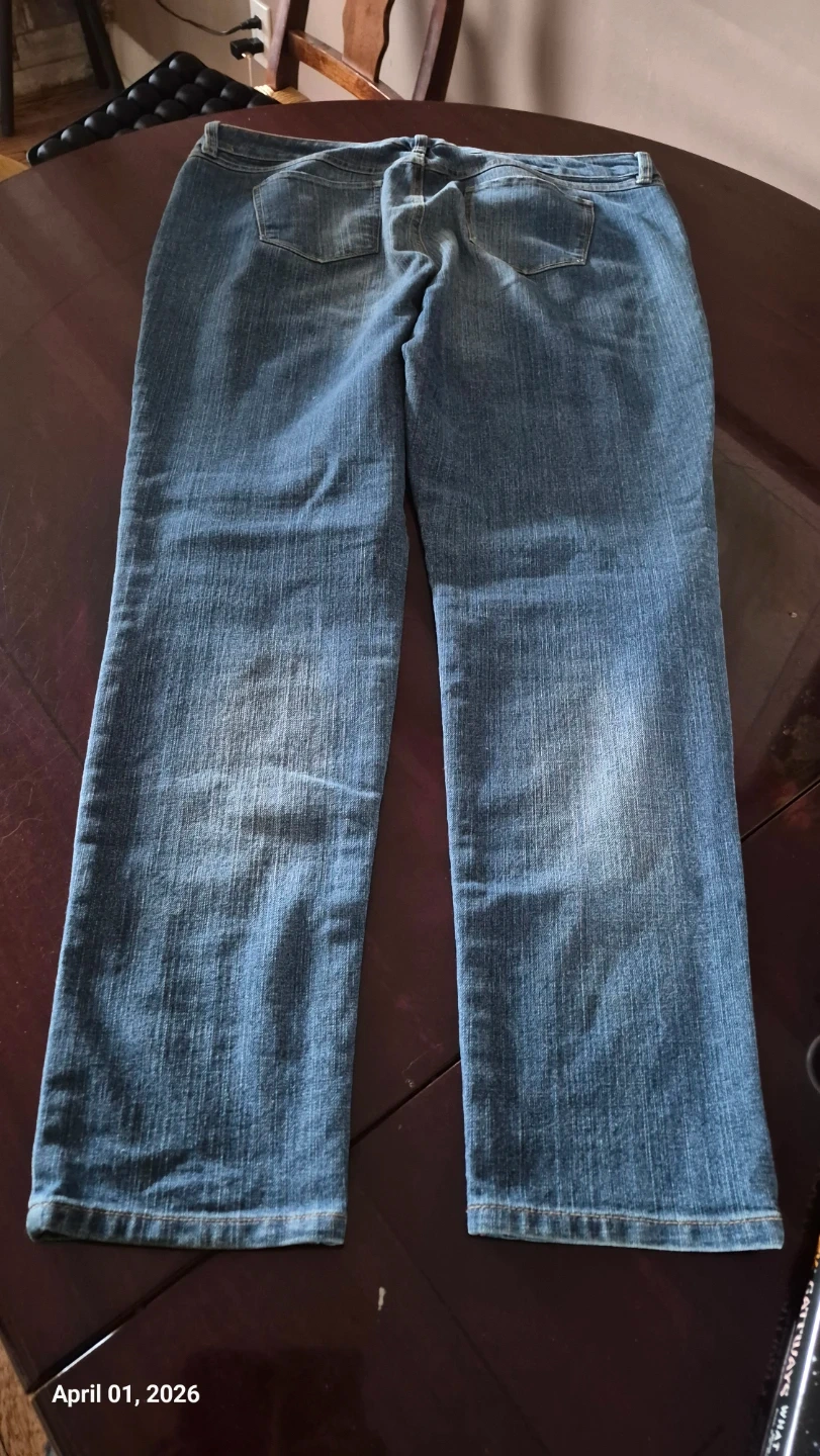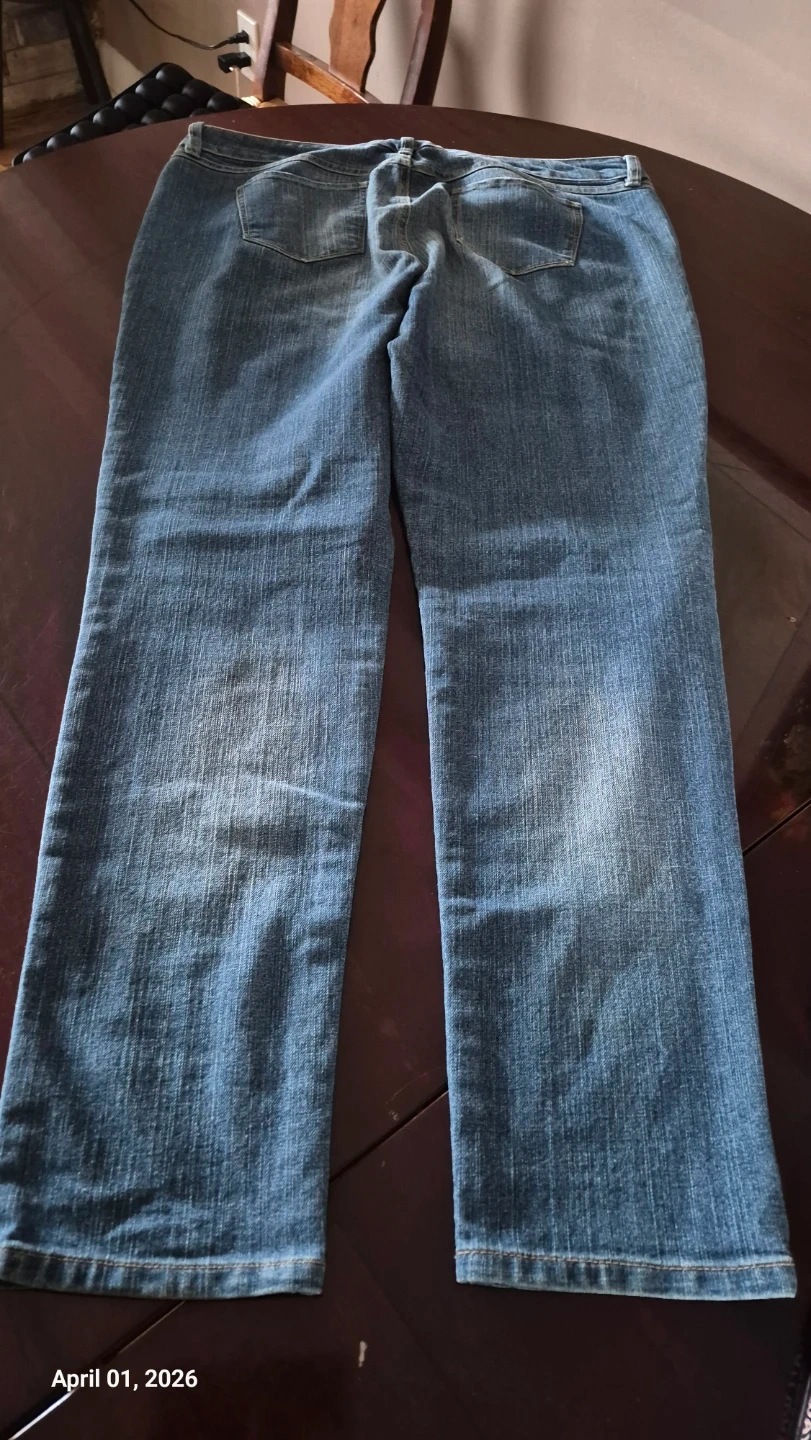 Alfred Sung Pure jeans in a women's size 16. These are a classic blue denim slightly distressed style. They're comfortable for everyday wear or night life.