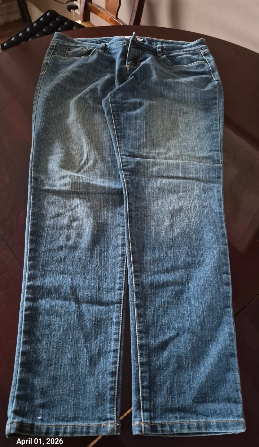 Alfred Sung Pure jeans in a women's size 16. These are a classic blue denim slightly distressed style. They're comfortable for everyday wear or night life.