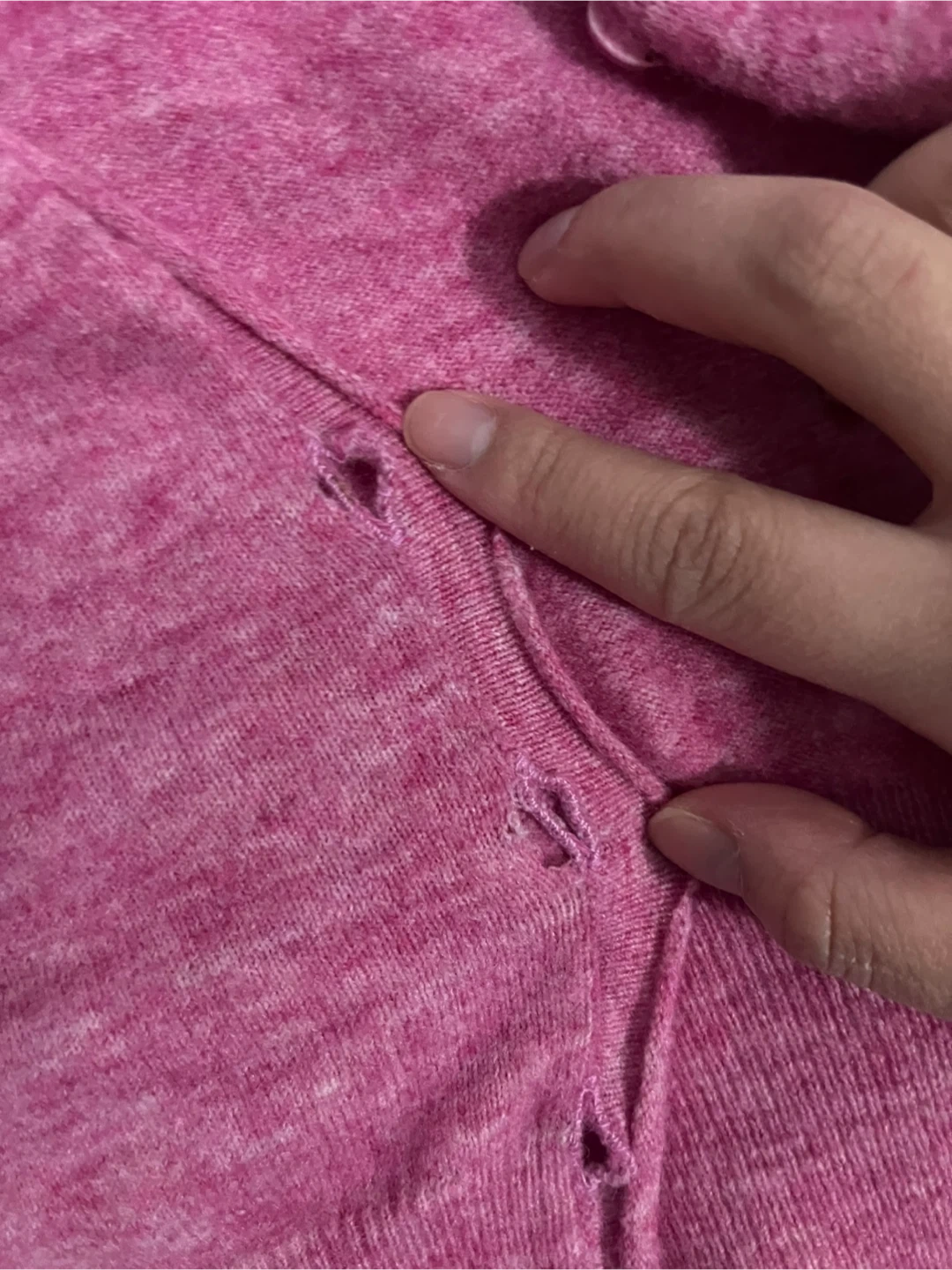 - damage to two button holes (3rd slide), but can still button up fine