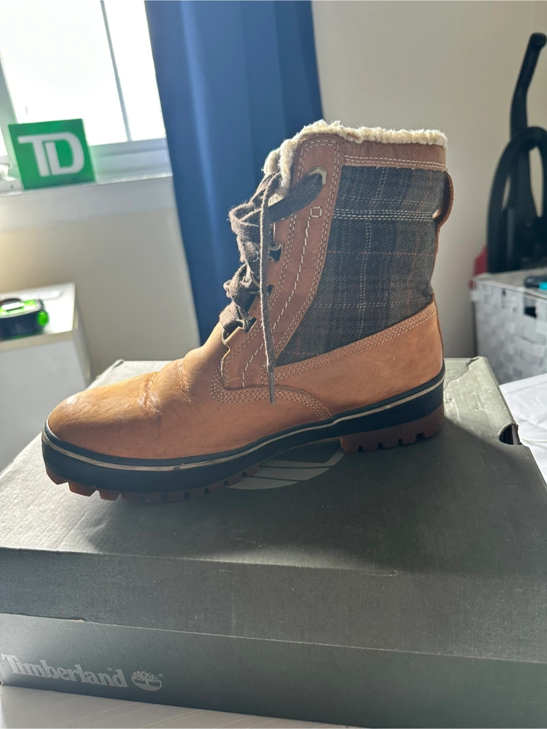 Timberland men's brown winter boots. Includes original box. These boots are lined with a warm shearling material. US size 7.
