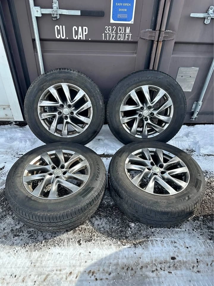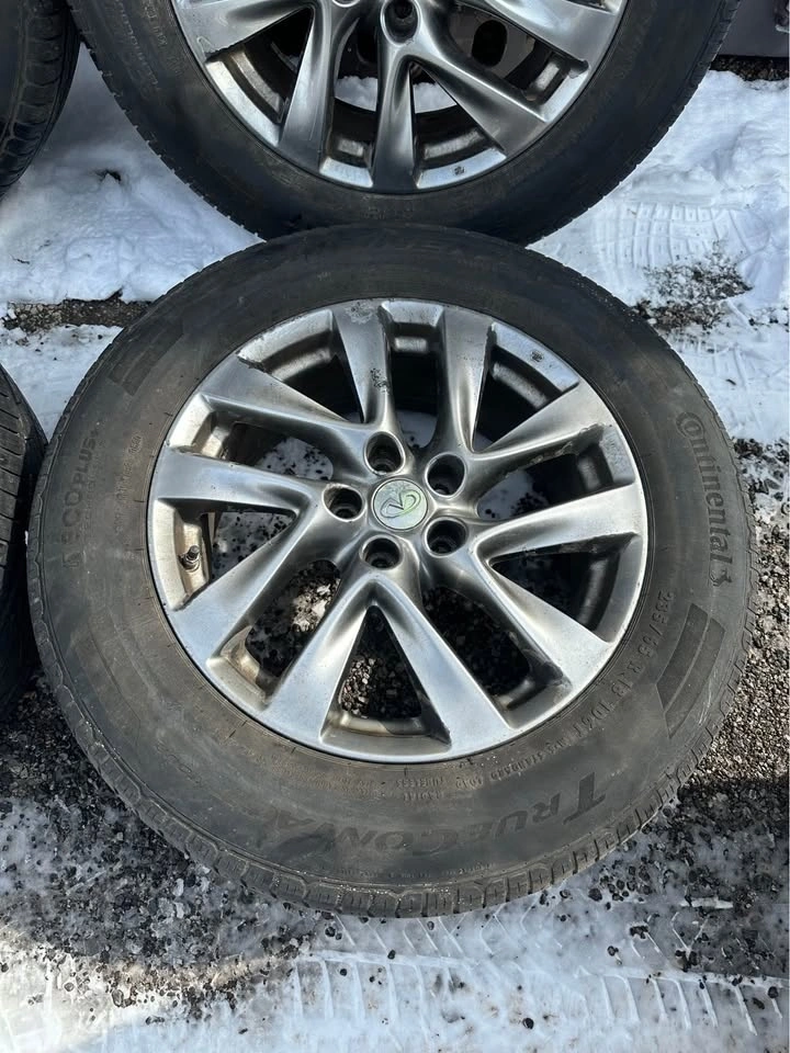 Selling a set of OEM 18” Infiniti JX35/QX60 rims on Continental all-season tires. Bolt pattern is 5x114.3. Tires have good tread left. Tire size: 235/65R18. Came off a 2016 Infiniti QX60, will fit other years! $599 for the set. All prices are subject to HST. We accept credit, debit, e transfer, & cash! Pickup in Oakville. Message me for any questions!