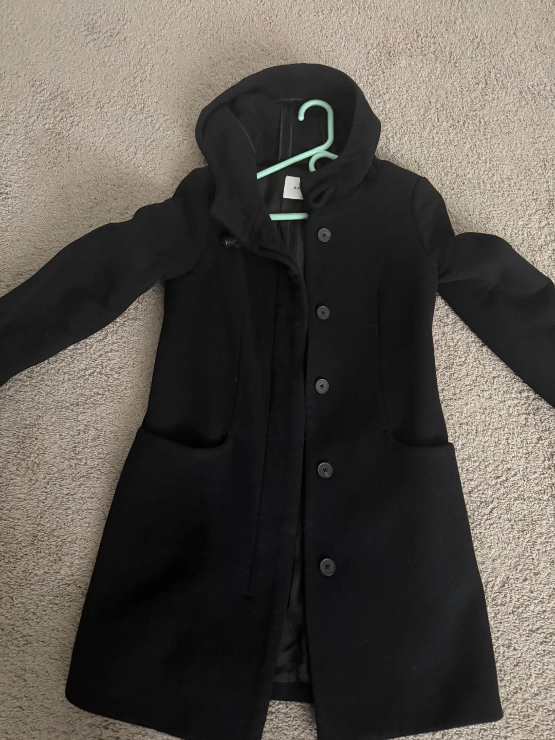 Black Hooded Wool Blend Coat