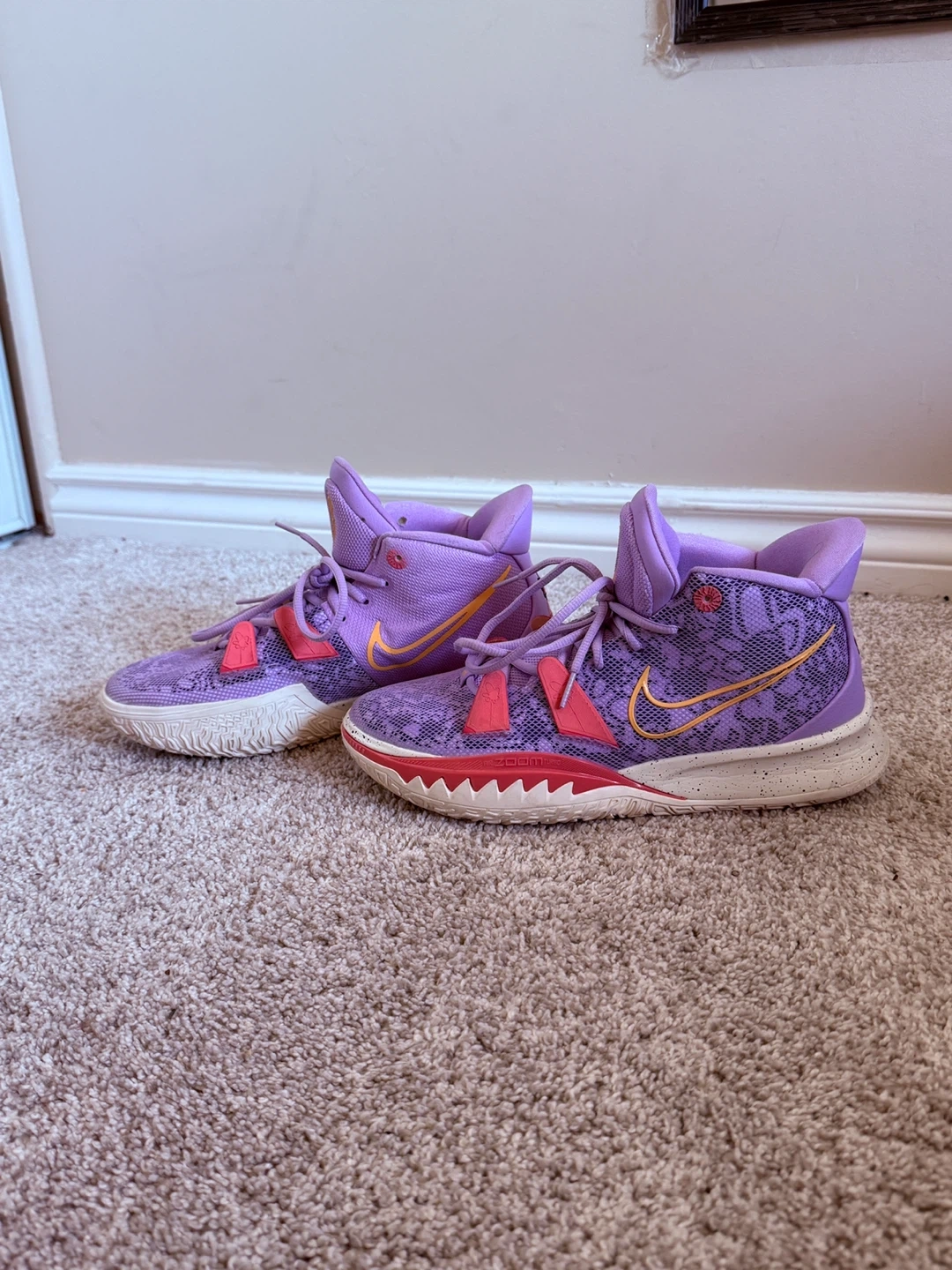 Nike Kyrie 7 daughters size 9.5 great condition rarely worn real not reps asking for 140$ but price is negotiable open to trades