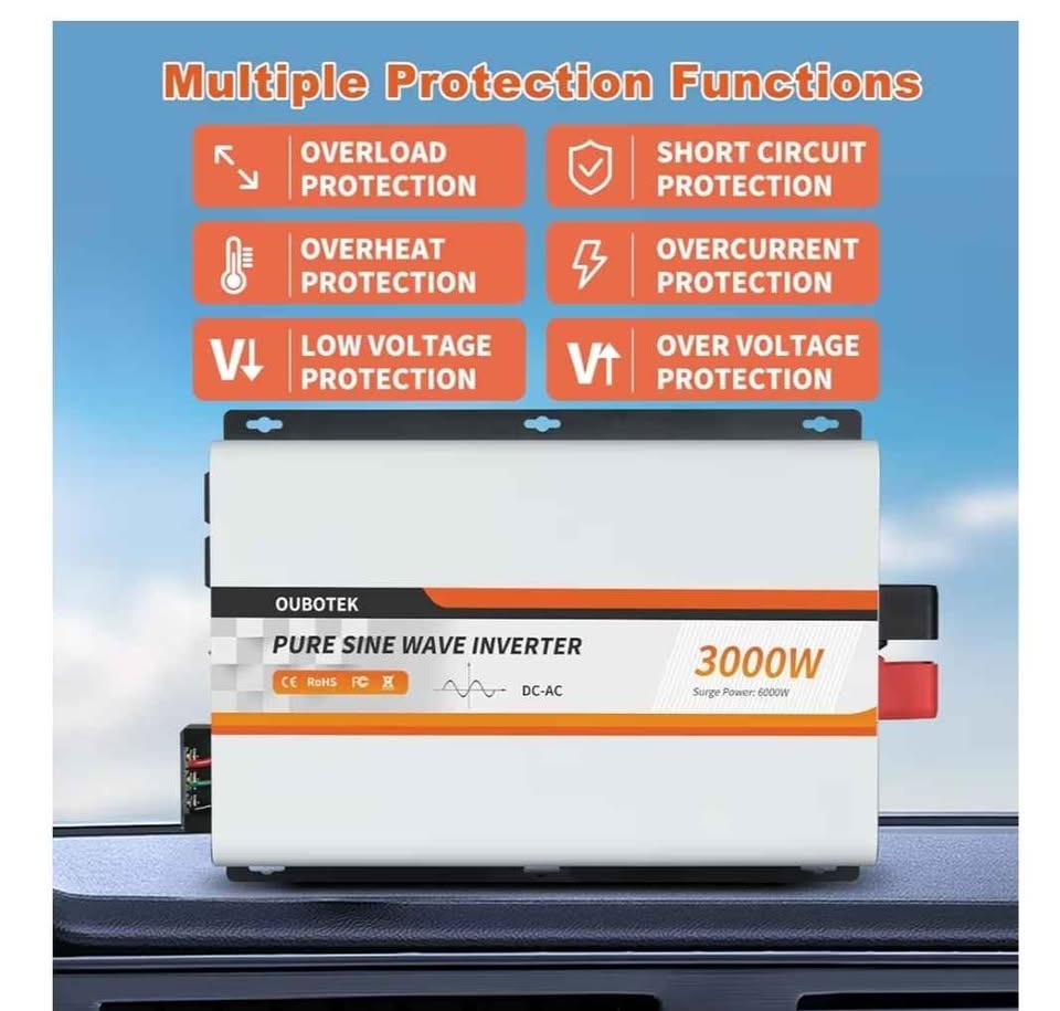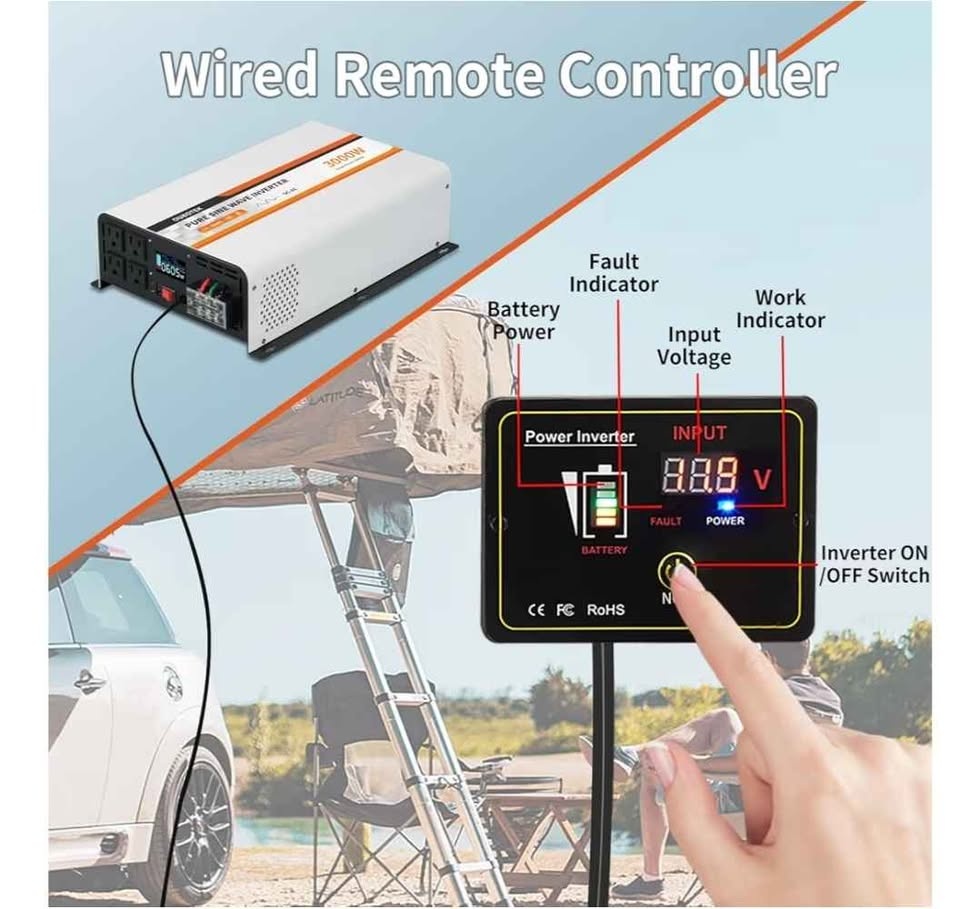 3000W Pure Sine Wave Inverter with LCD, Remote, USB