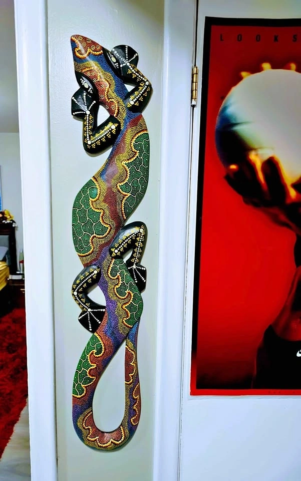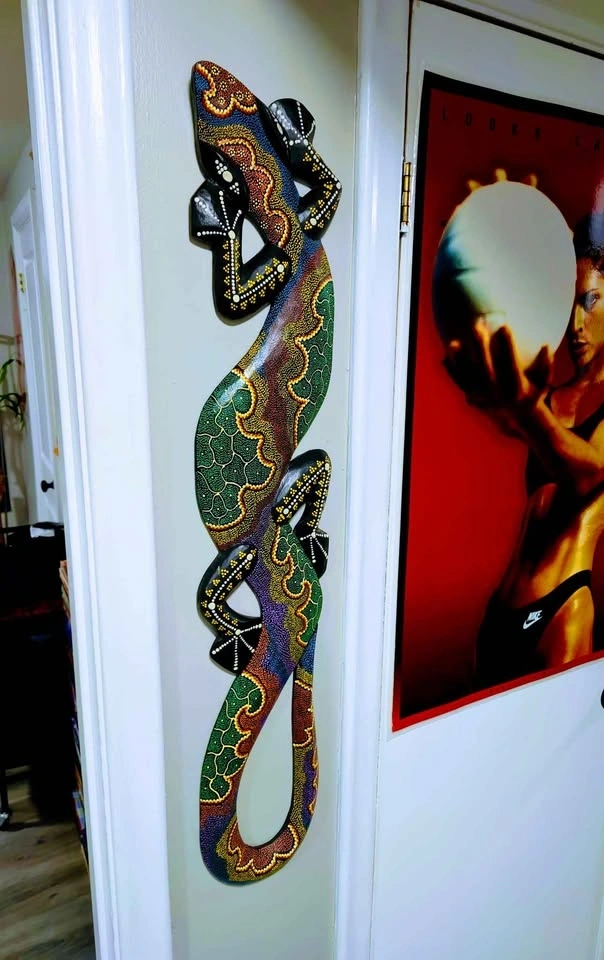 Buy & SellVintage 90's Wooden Lizard Wall DecorVintage 90's Wooden Lizard Wall Decor$60Excellent condition, normal surface wear (8/10). Handmade and hand-painted in Mexico, 1990s. Size: 3ft x 1ft.WHERE TO MEETCheck LocationView MapSELLERverifiedTJCentral750 reviews0 chats·0 favorites·5 viewsSEND CHAT TO SELLERHi TJ! I’m interested in your listing.Hi TJ! I’m interested in your listing.Get the Karrot app to chatSign In to chat