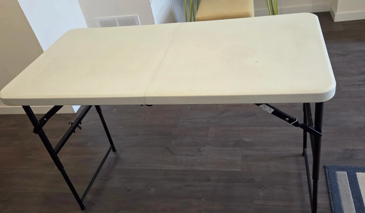 Buy & SellFolding TableFolding Table$20White Folding Table 24in x 48in Adjustable height ConditionGoodDimensions24in x 48in x adjustableWHERE TO MEETApartment unitView MapSELLERverifiedAnthonyAurora Centre N1287 reviews0 chats·0 favorites·11 viewsSEND CHAT TO SELLERHi Anthony! I’m interested in your listing.Hi Anthony! I’m interested in your listing.Get the Karrot app to chatSign In to chat