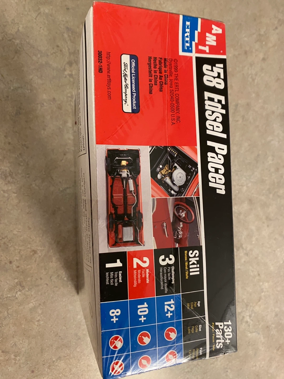 This AMT ERTL model kit is for the 1958 Edsel Pacer. It's a skill level 2 kit with 130+ parts. Recommended for ages 10 and up.