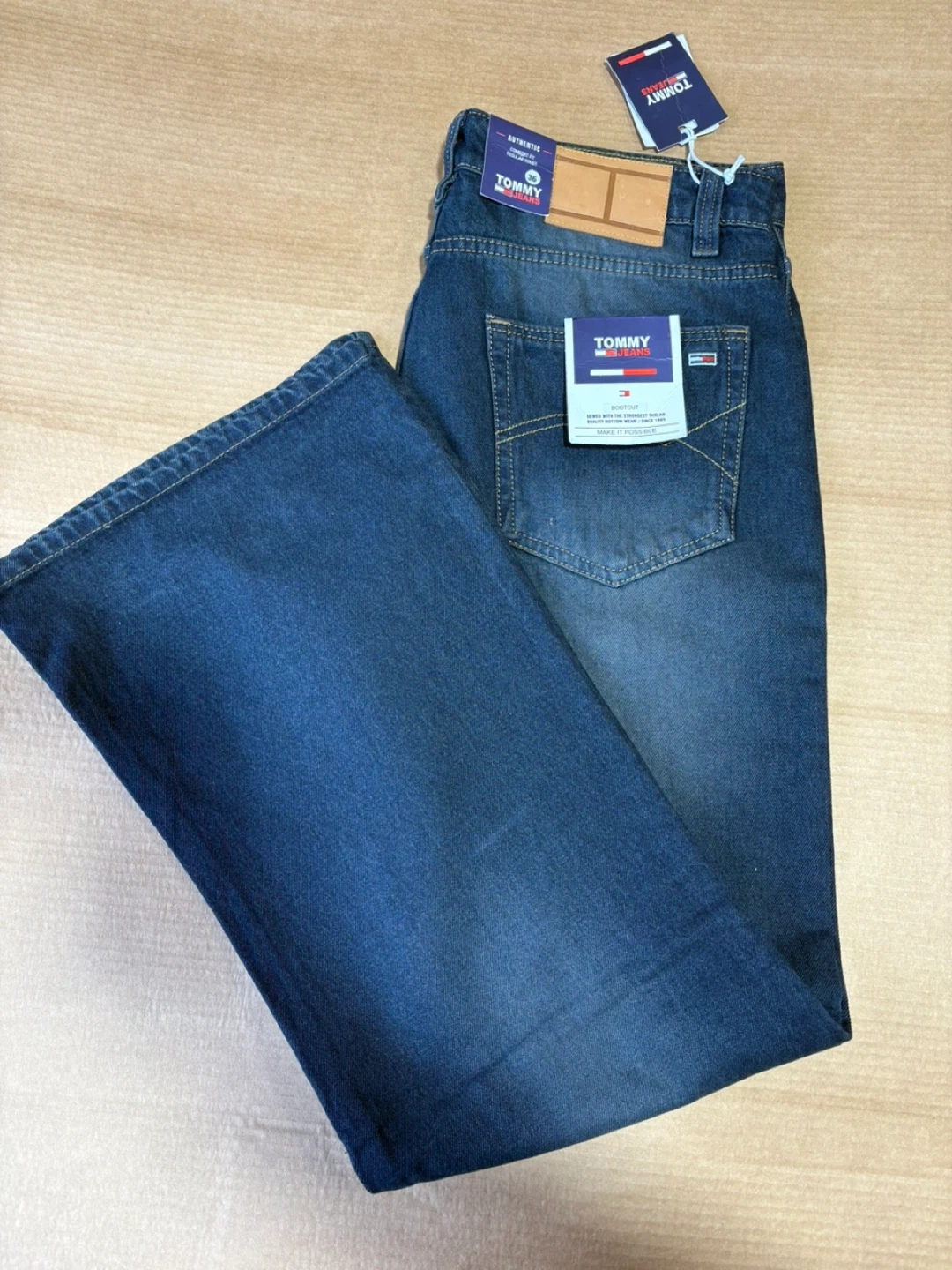 Brand new Tommy Jeans bootcut jeans with tags attached. Dark blue wash denim. Classic five-pocket styling. Made from durable denim.