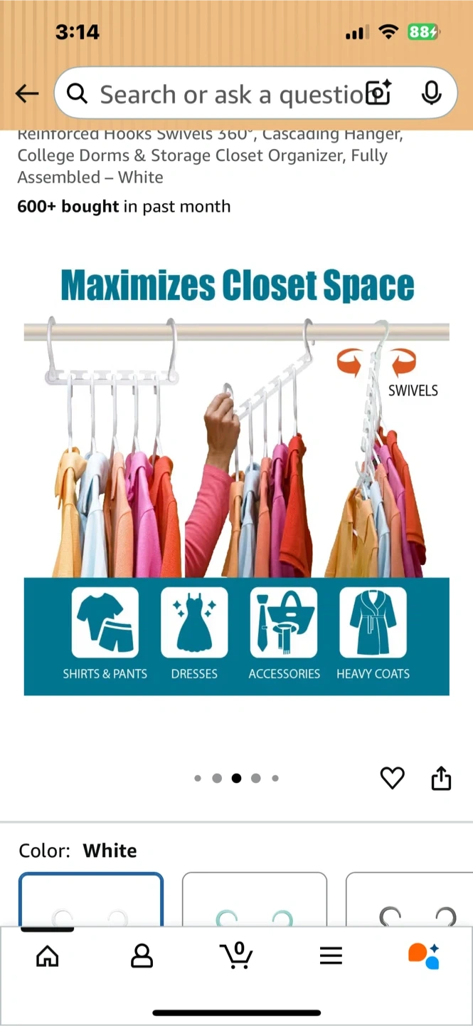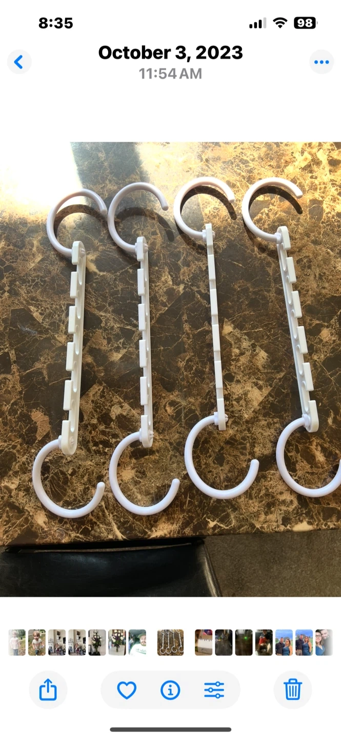 This is a 4 pack of Wonder Hanger Max cascading hangers in white. They're designed to maximize closet space and can hold shirts, pants, dresses, accessories, and heavy coats. The hangers feature reinforced hooks and swiveling capabilities.in excellent condition comes with 4 of them