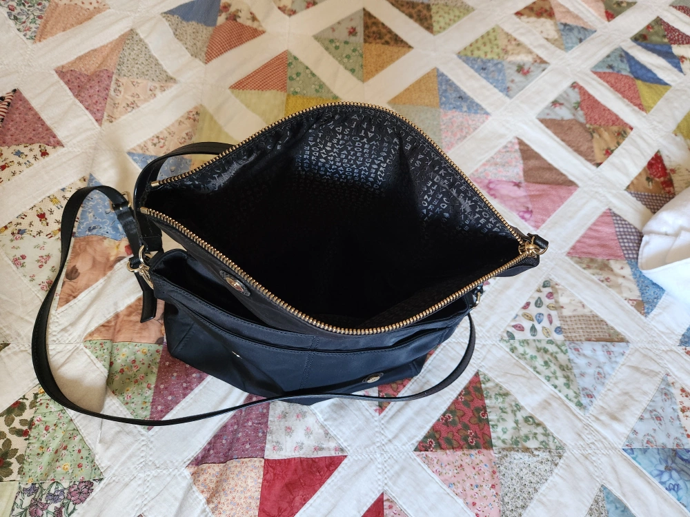 s•adjustable strap length: 5 light gold plated hardware • shoulder bag with zipper closure
