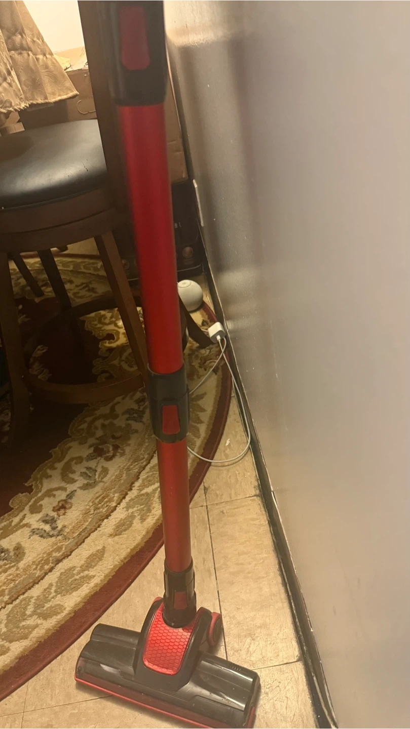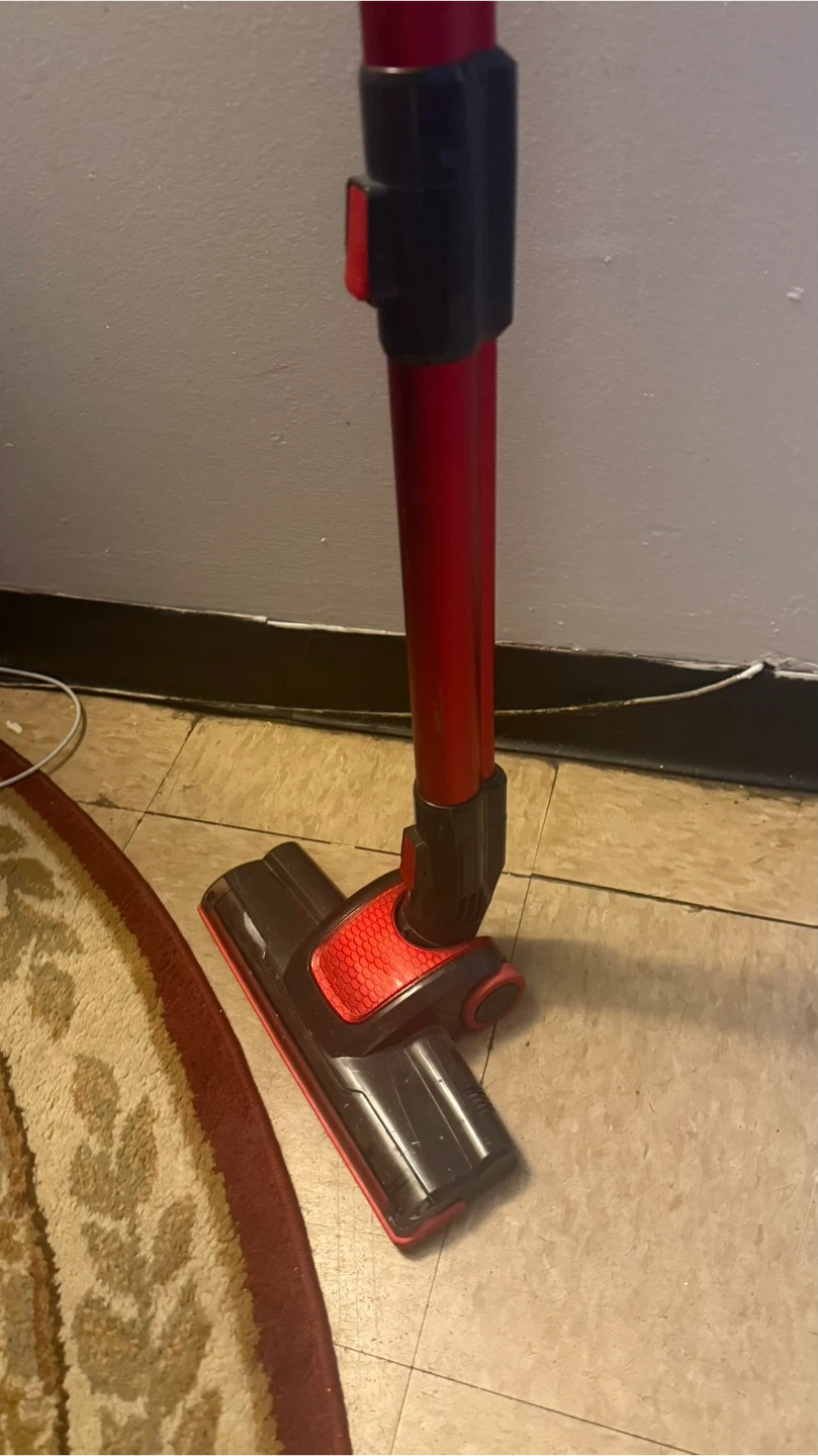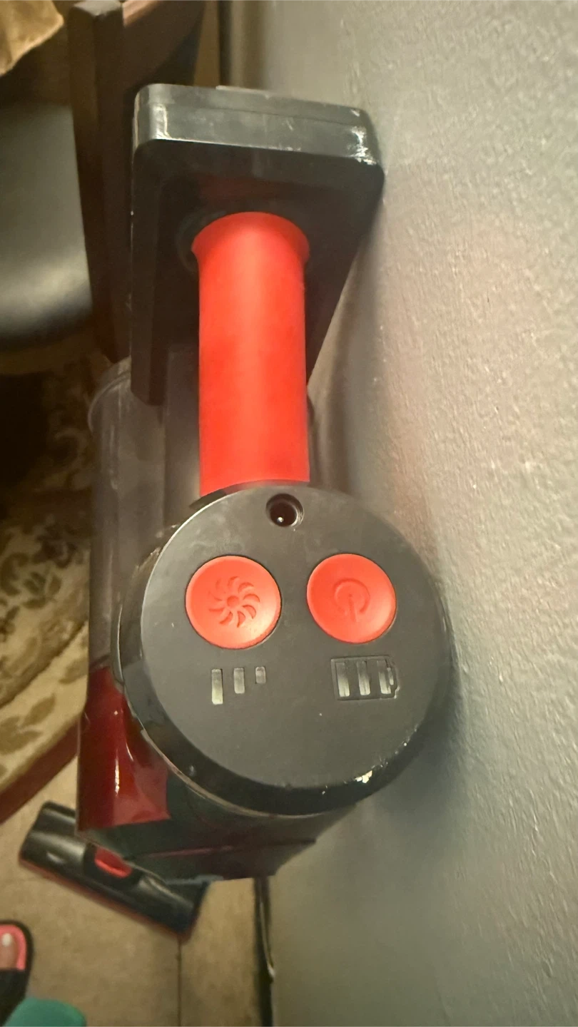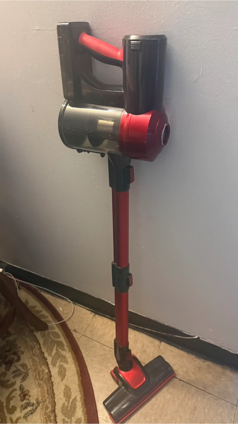 Selling a used cordless vacuum in red and black. It's in good working condition and ready to help keep your space clean!