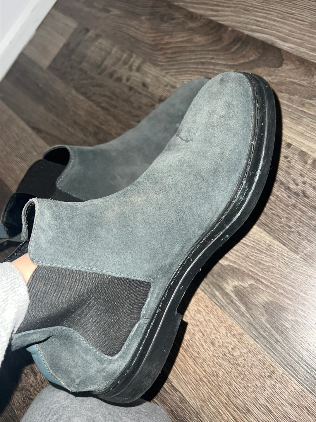 Calvin Klein Chelsea boots. Suede upper with elastic side panels. Rubber sole.