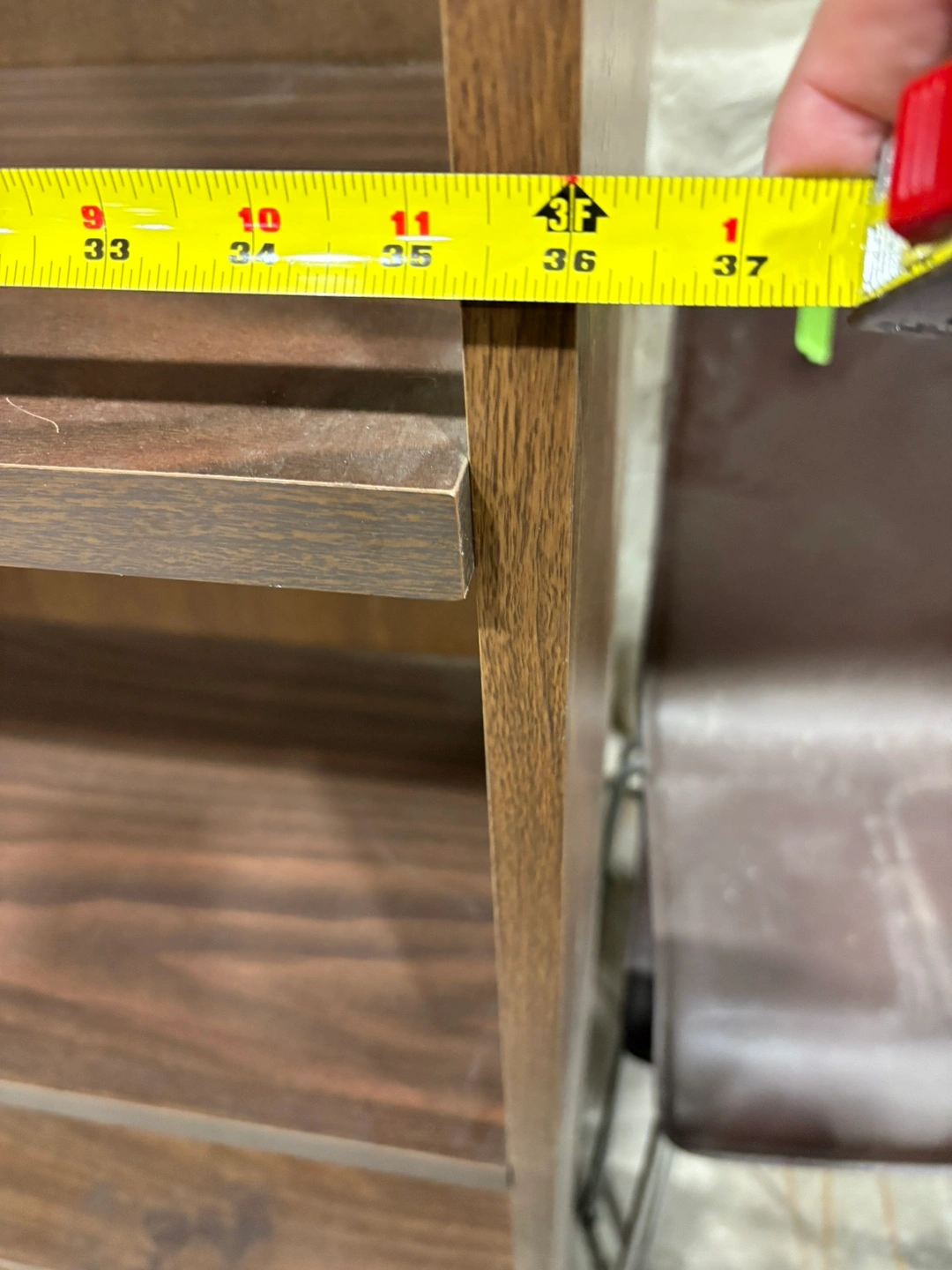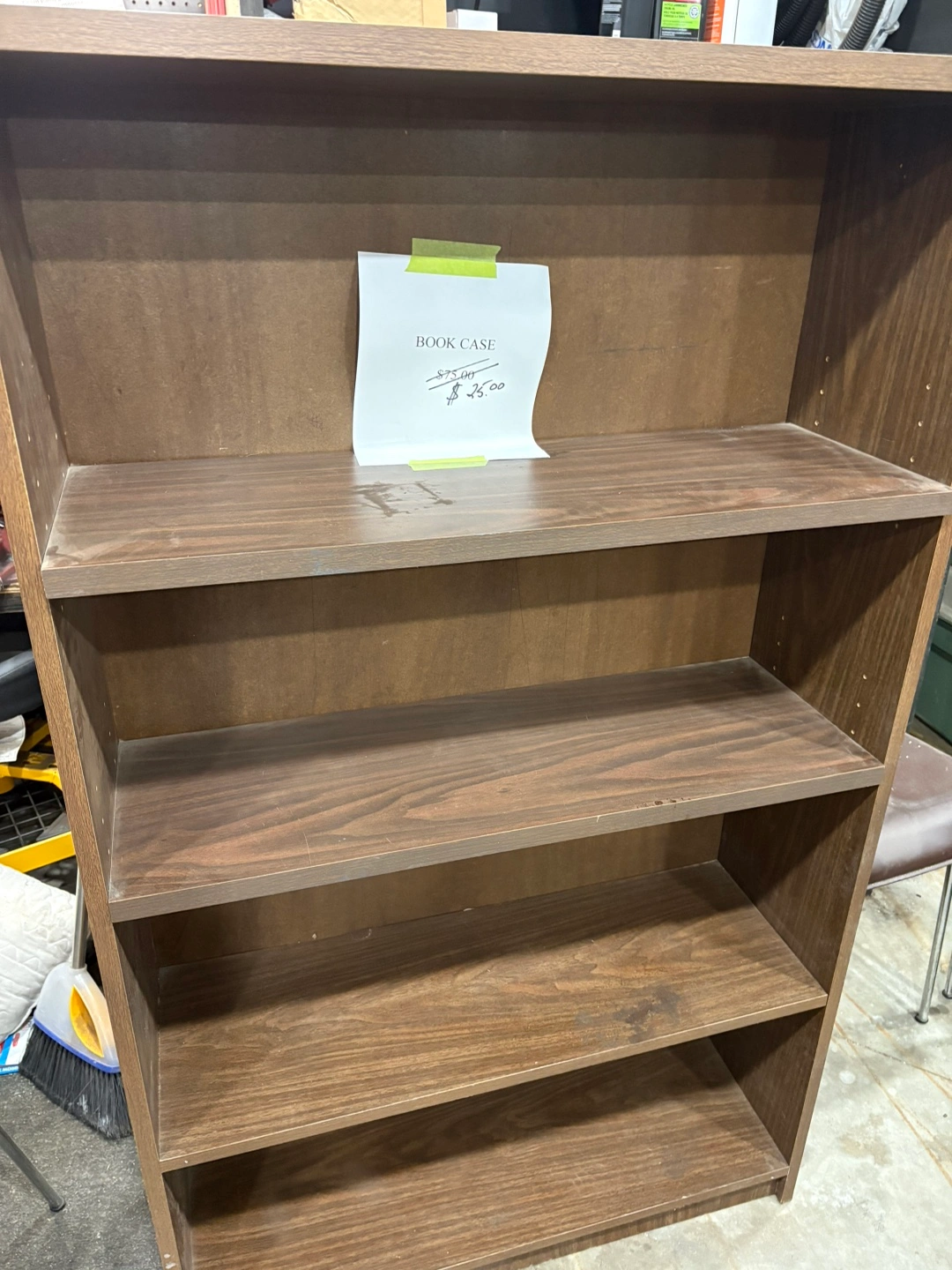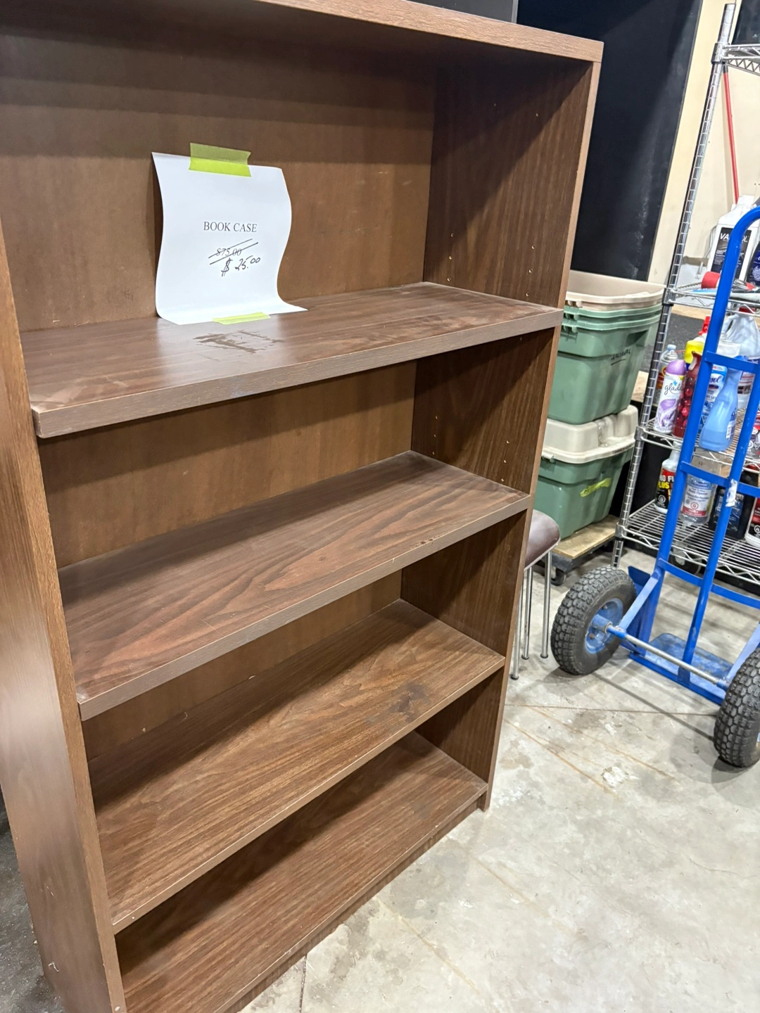 Bookcase with four shelves. Has a warm, wooden tone. Offers plenty of storage space for your favorite books to be admired. This bookcase is a great addition to your home for some extra organization. Sizes are in the pictures!