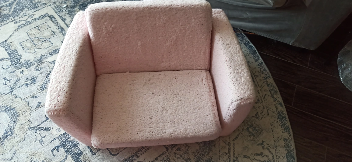 A comfy and cute pink toddler-sized chair! It's in great condition and perfect for a little one's reading nook or playroom.